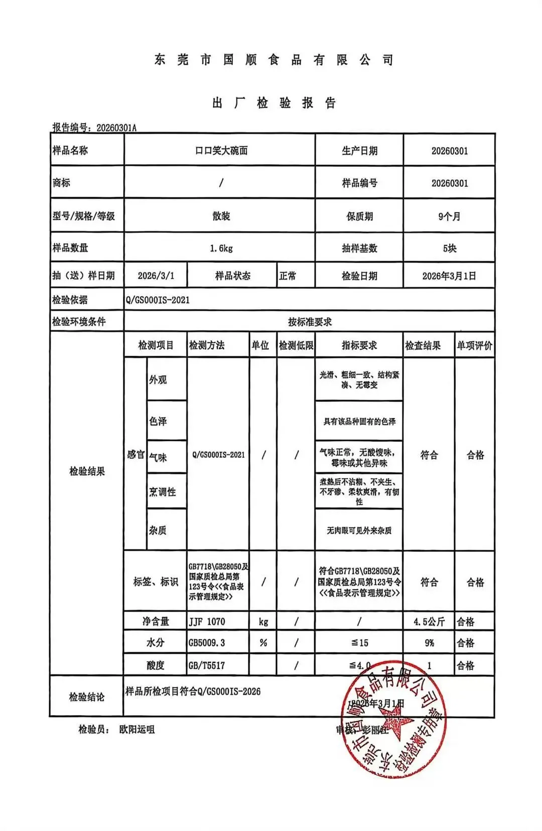 金浦供应链&禾美农业-03月22日蛋类、酱腌菜、肉类、蔬菜、水豆腐、鲜湿淀粉条检测 报告