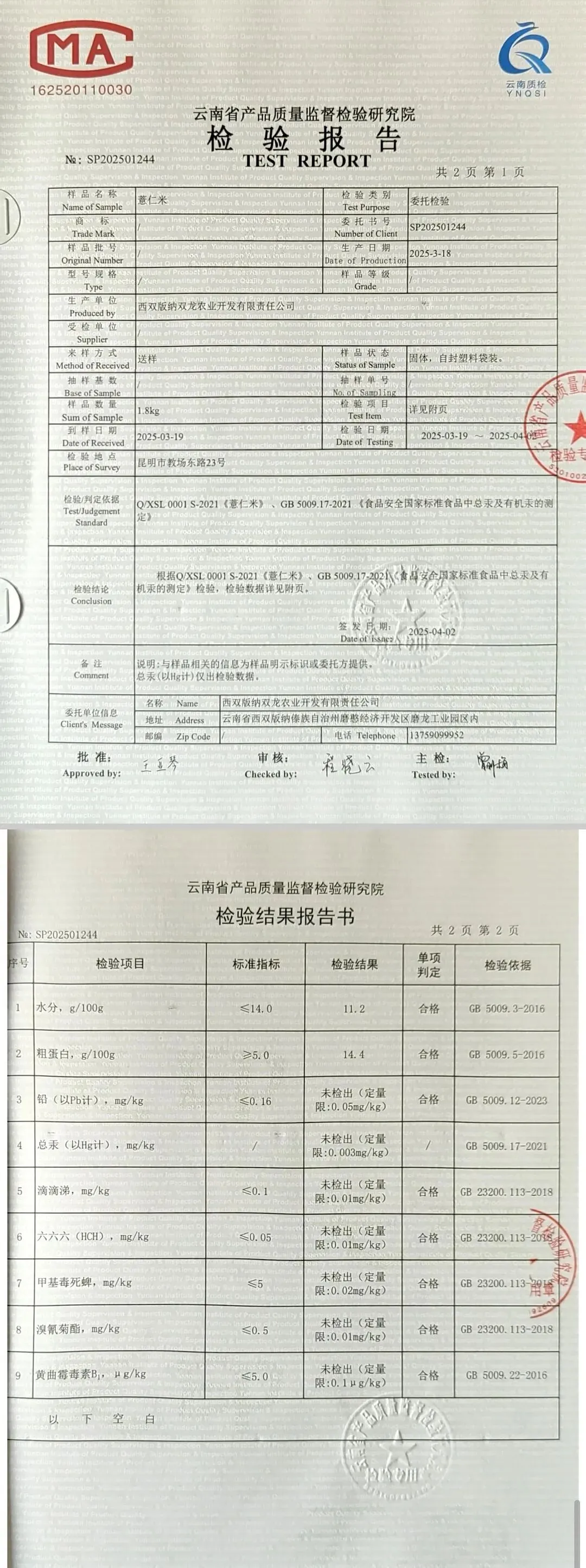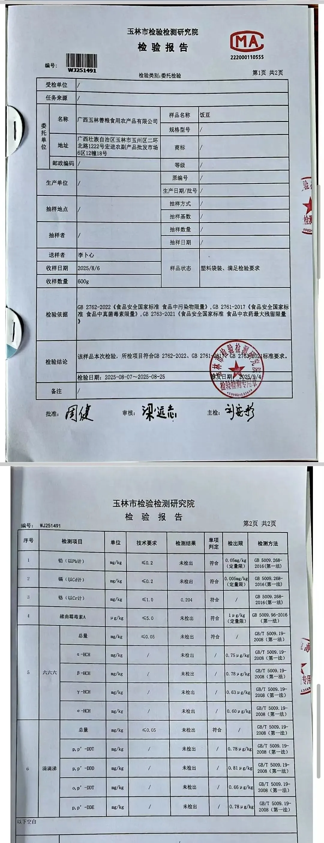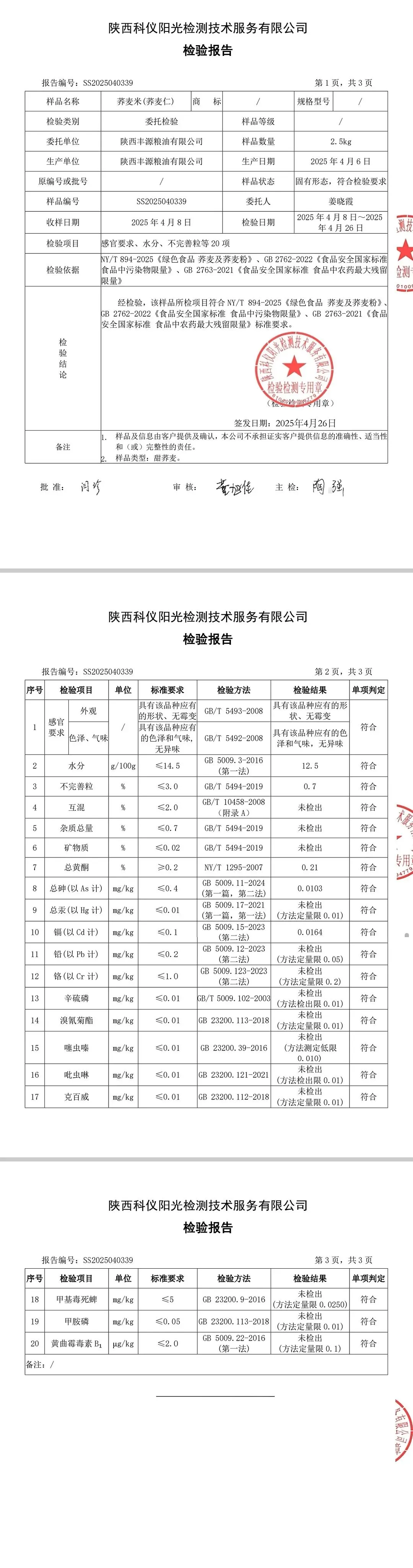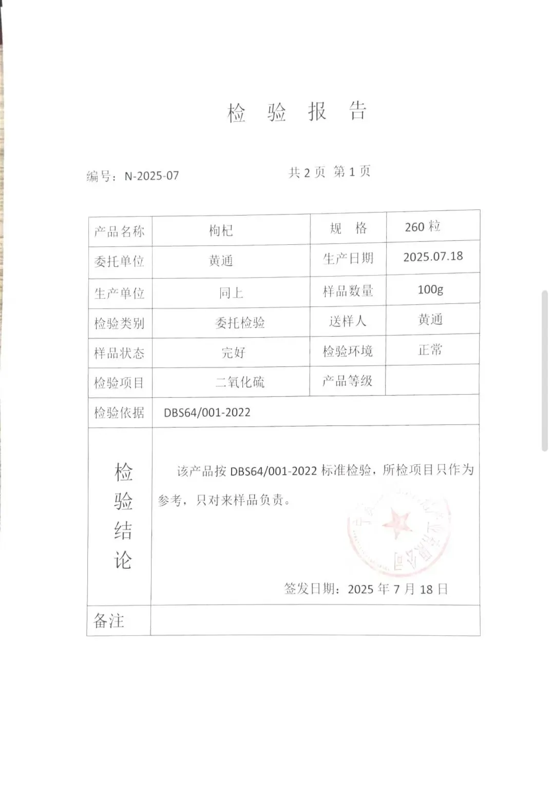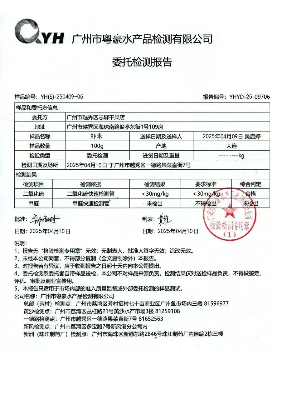 干货类(粉丝、虾米、干贝、黑凉粉、红枣)检测报告