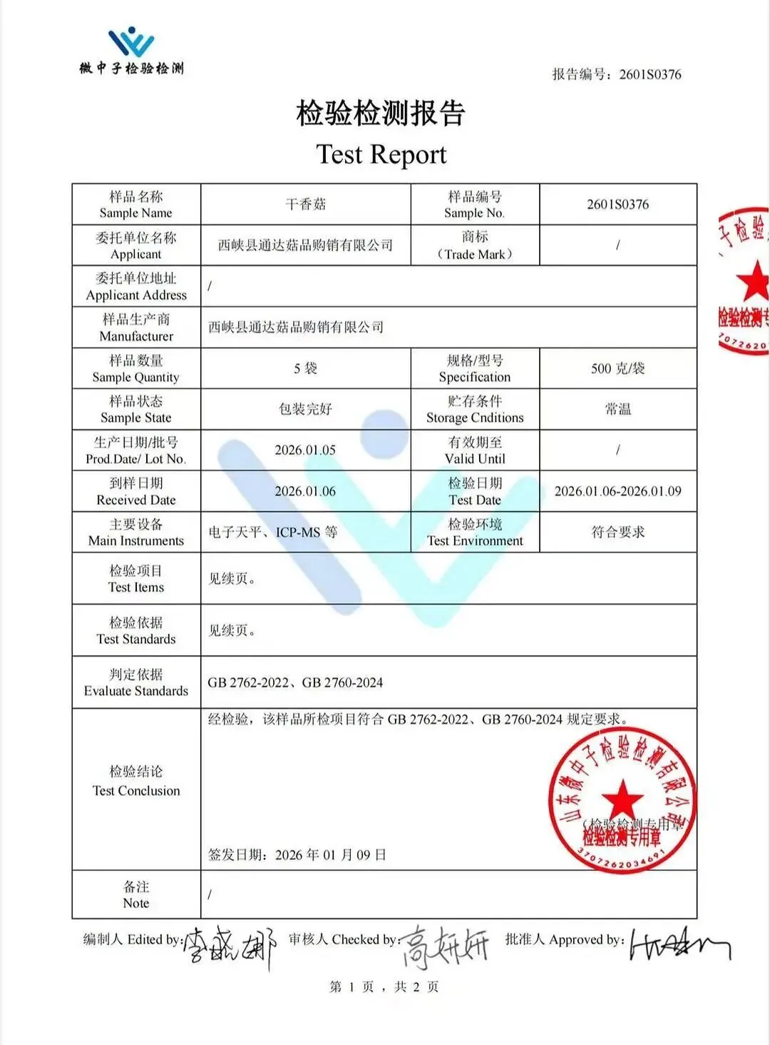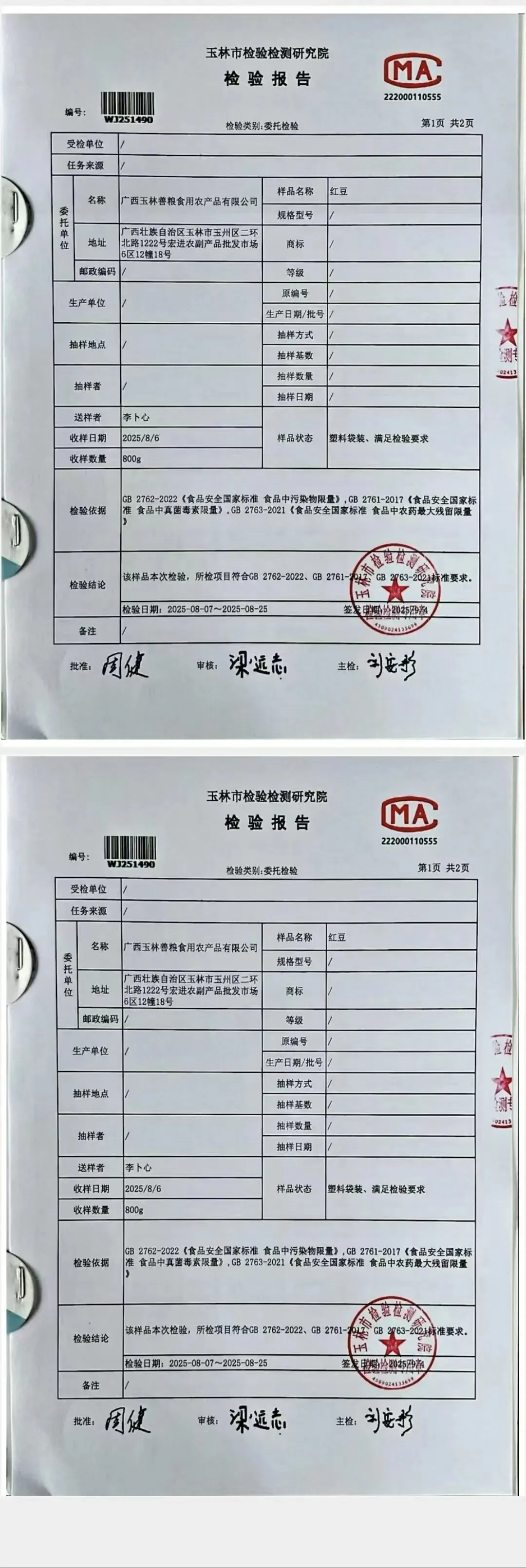 金浦供应链&禾美农业-03月22日干货类(粉丝、虾米、干贝、黑凉粉、红枣)检测报告