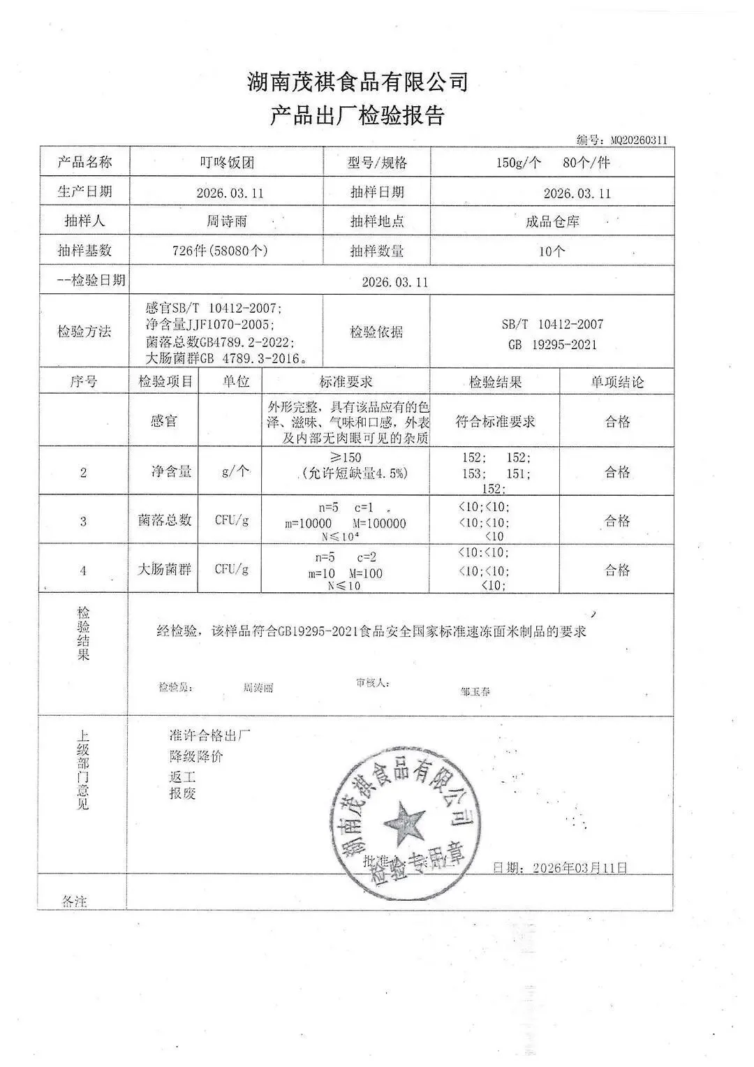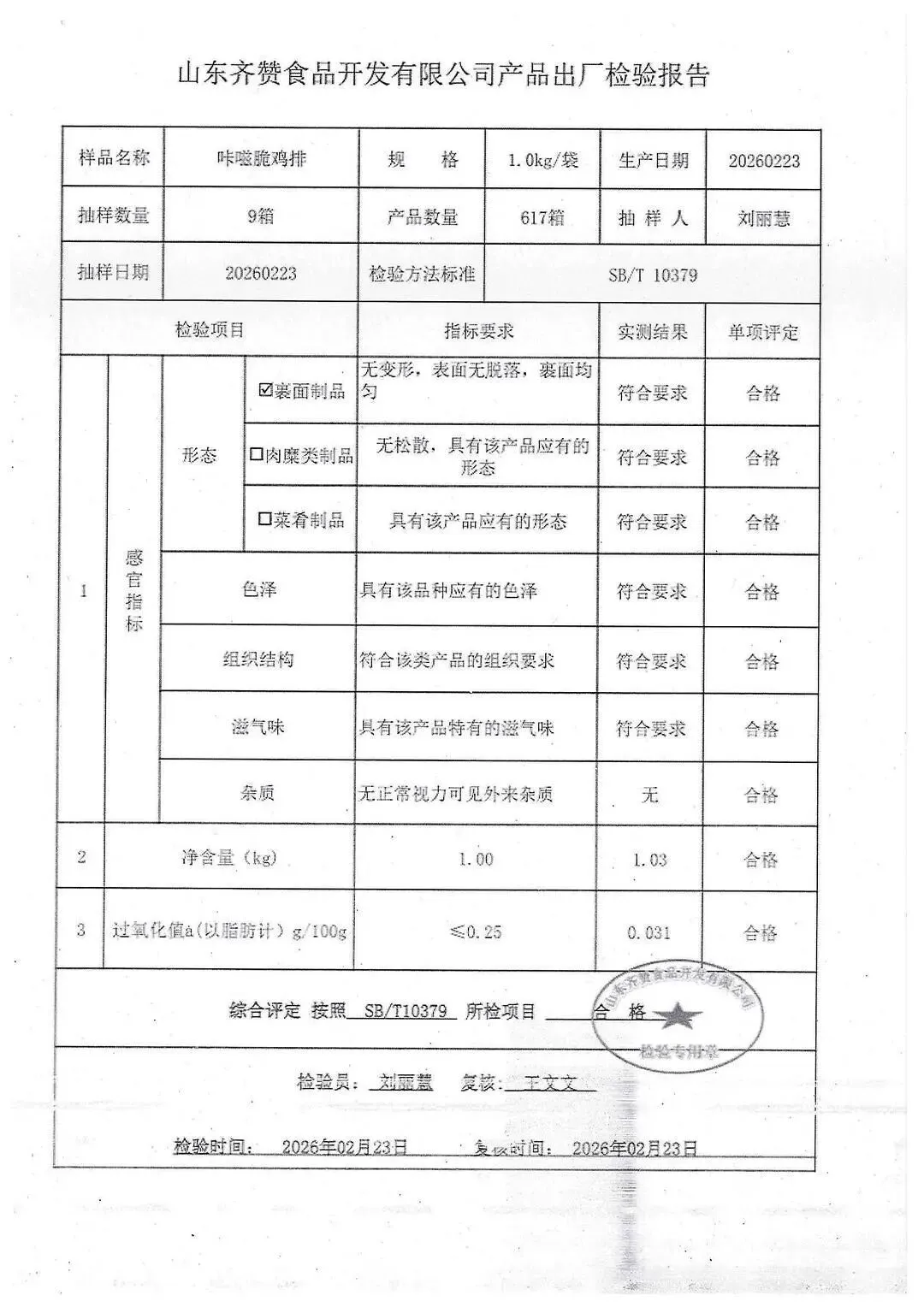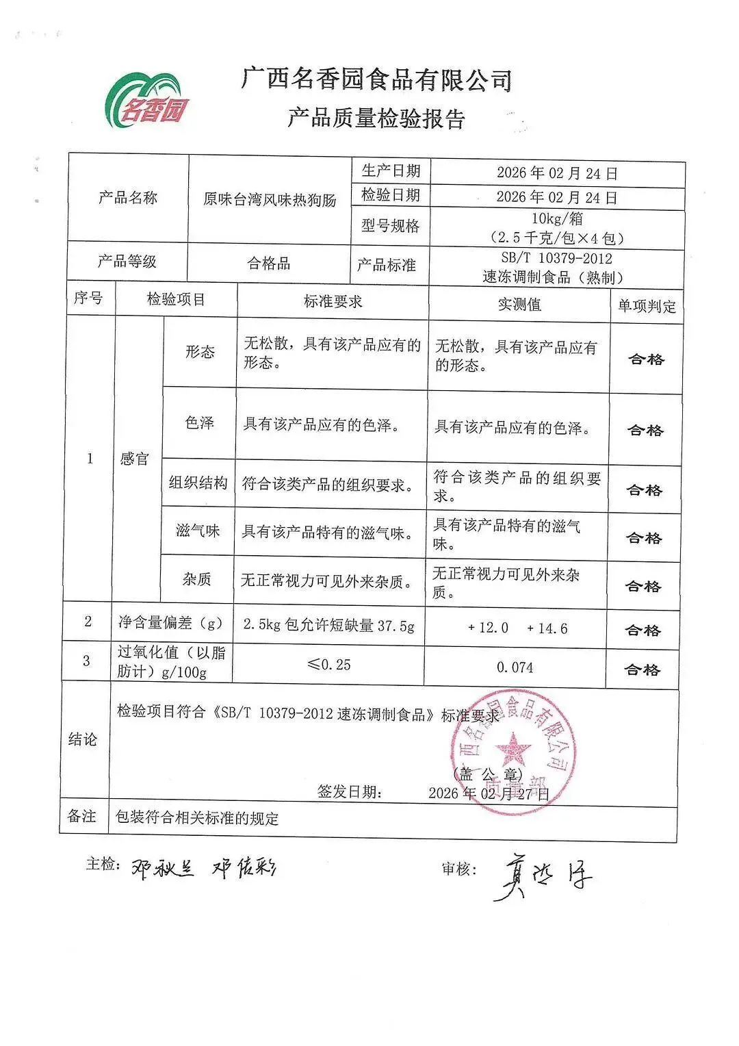 >金浦供应链&禾美农业-03月22日冻品、水饺、丸子、热狗、腊肠检测报告