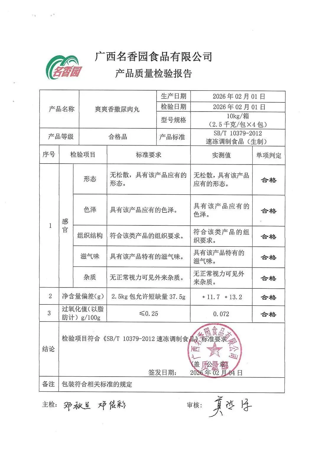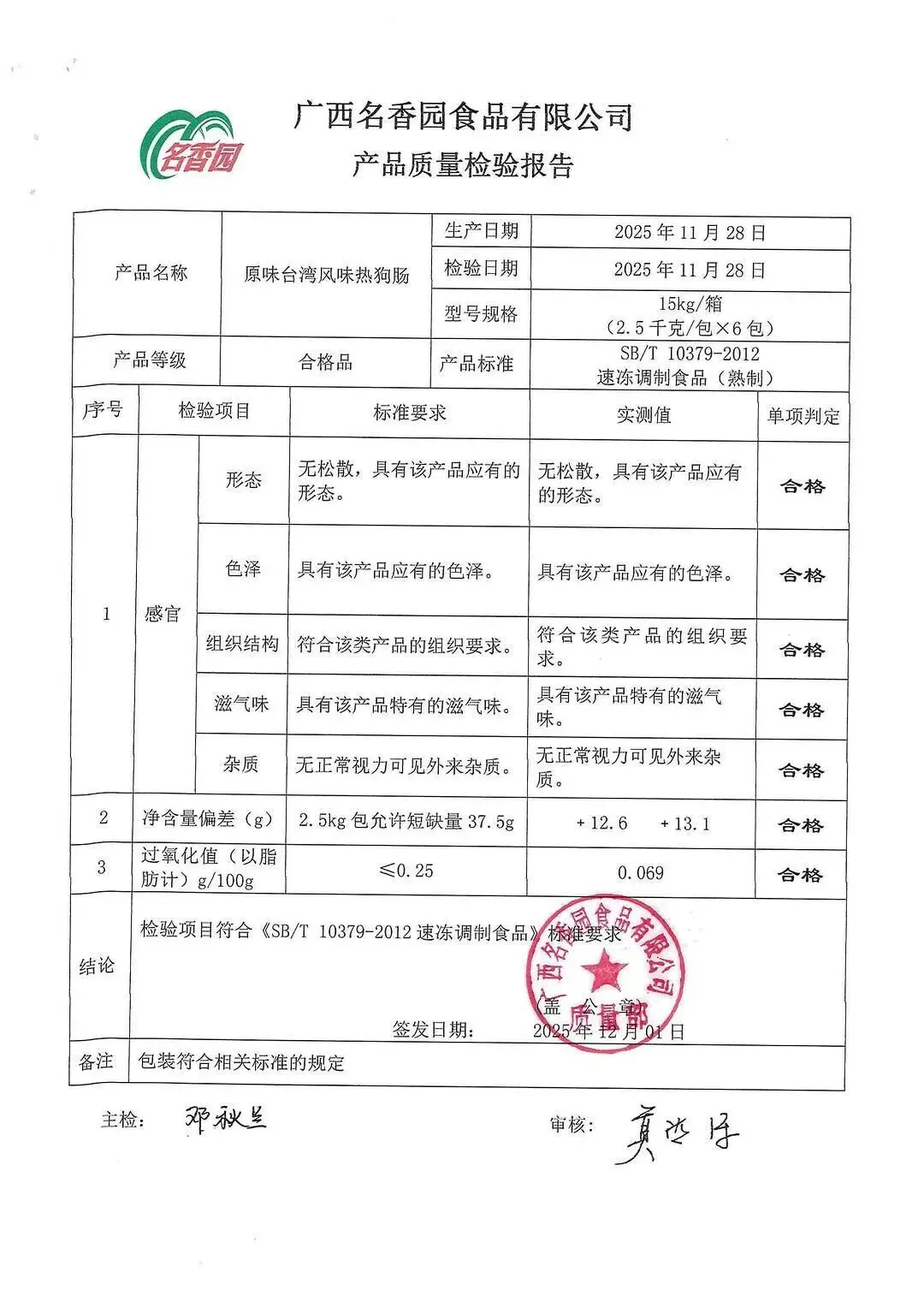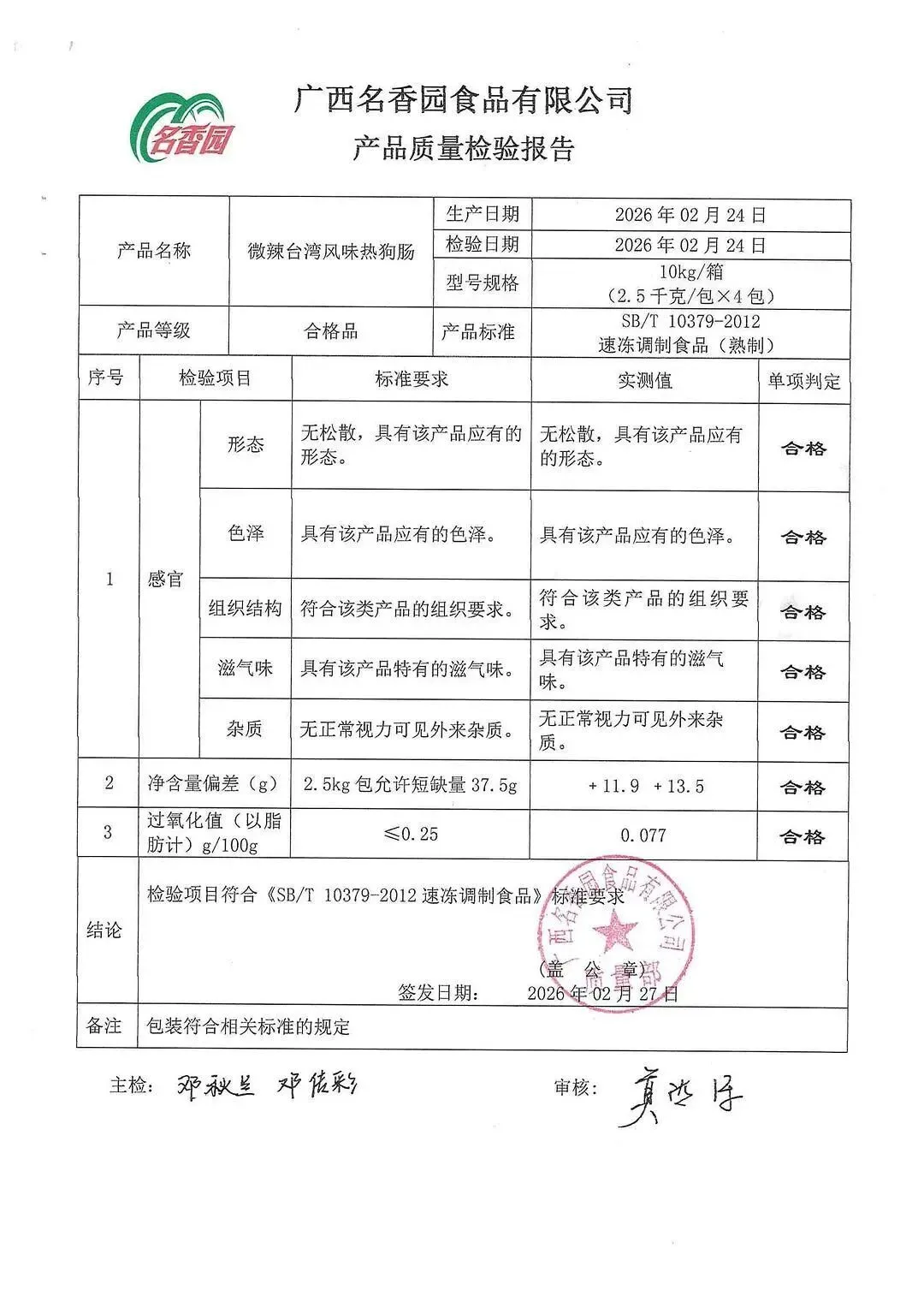 冻品、水饺、丸子、热狗、腊肠检测报告