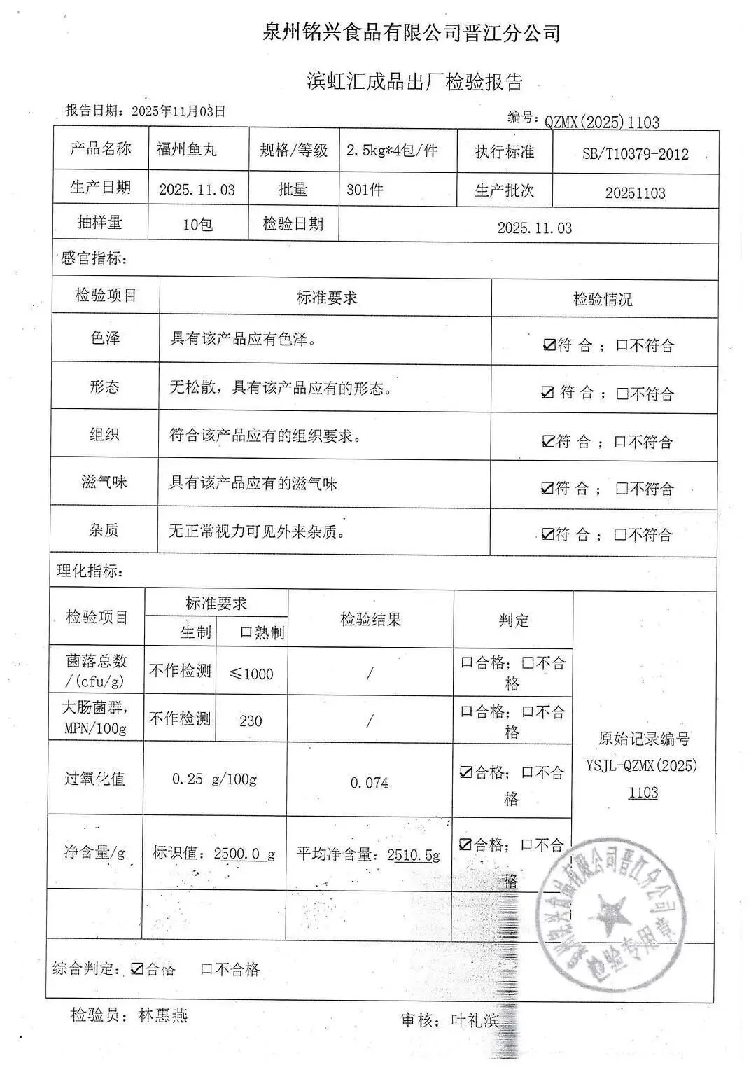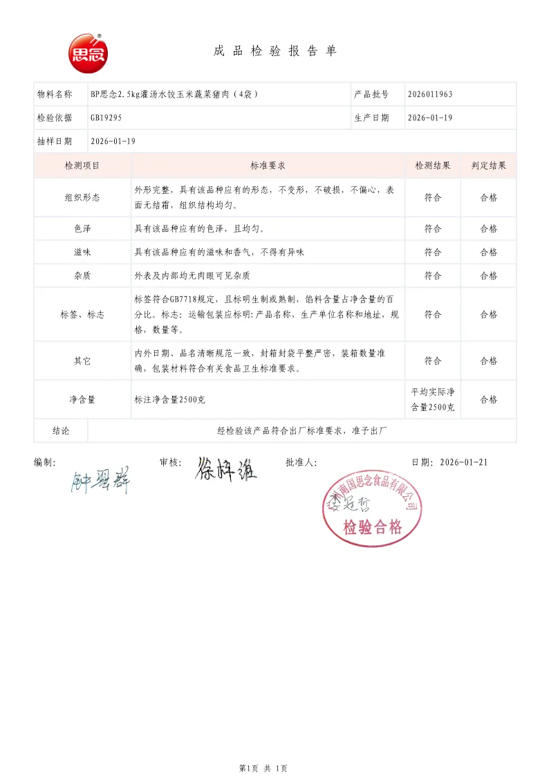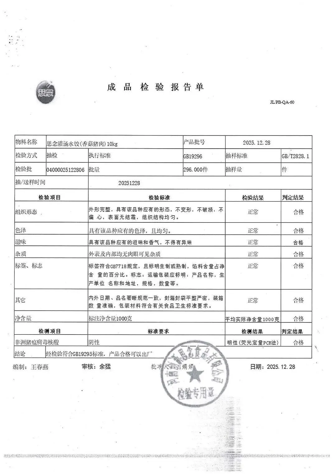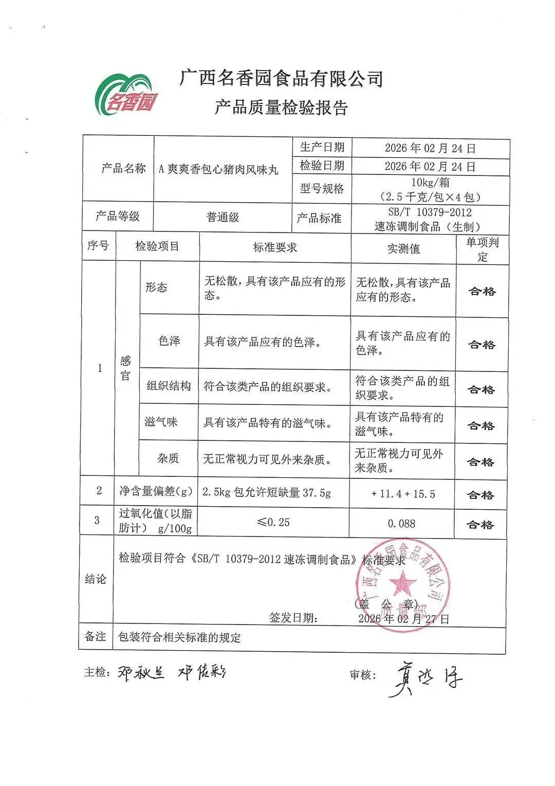 冻品、水饺、丸子、热狗、腊肠检测报告