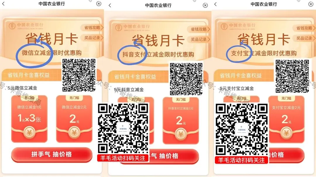 2、农行抖音5元!(抖音生活缴费-选用农行借记卡即可抵扣)