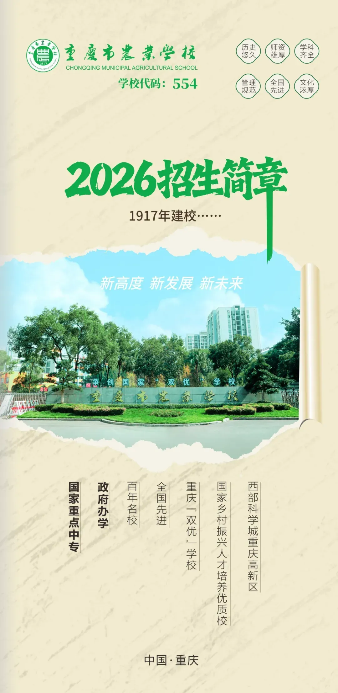 学校地址:重庆市九龙坡区白市驿镇黄金桥2号(重庆市农业学校)。