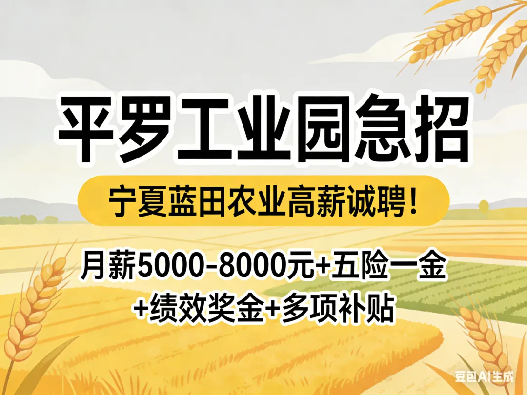 【平罗工业园急招】宁夏蓝田农业高薪诚聘!