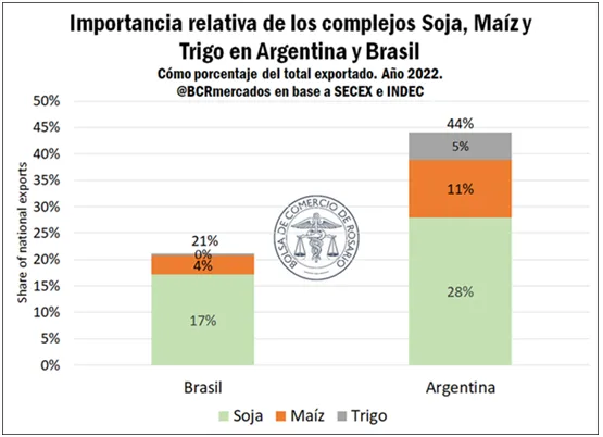阿根廷和巴西农业产业在出口中的作用以及两国生产的相对演变
