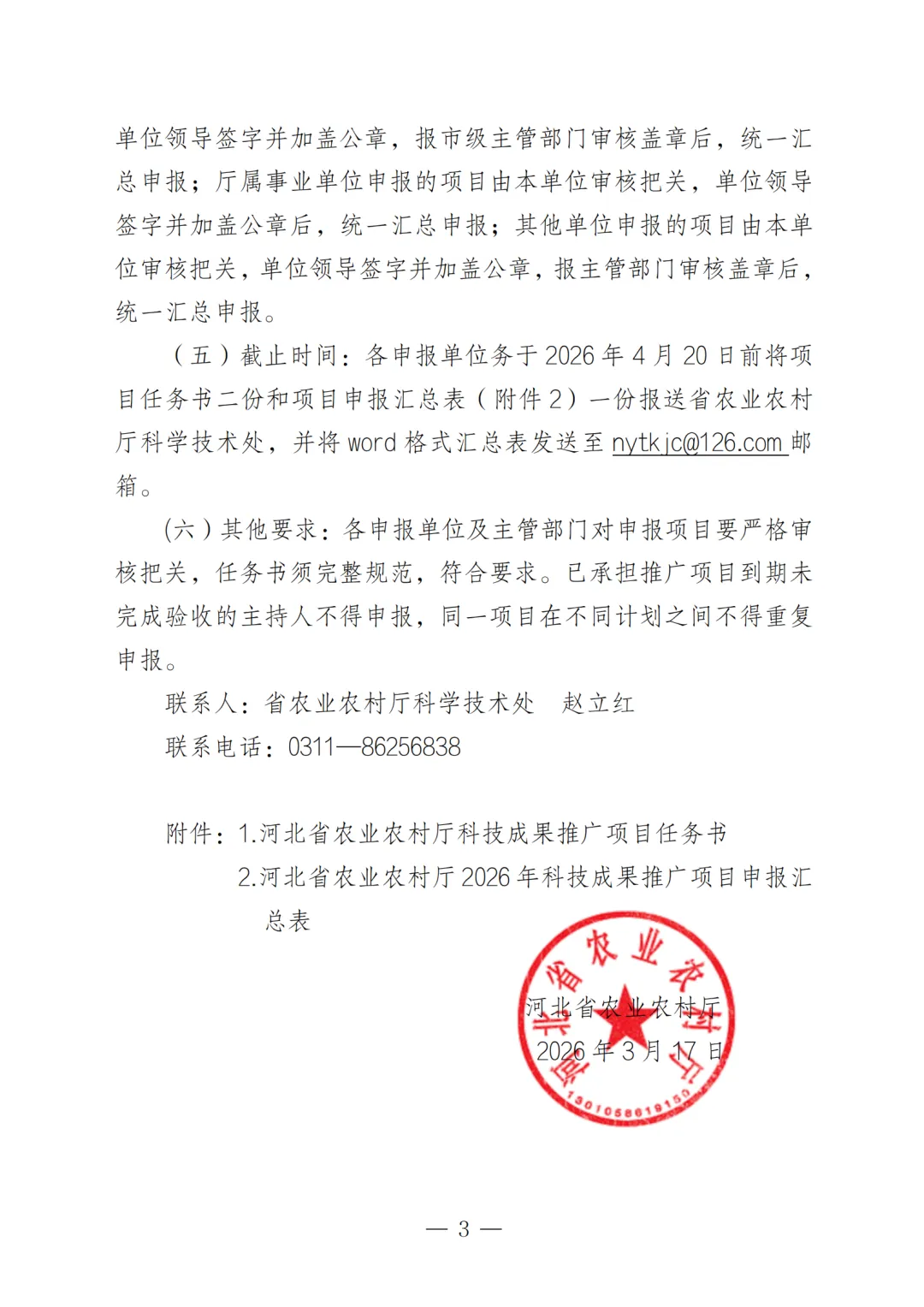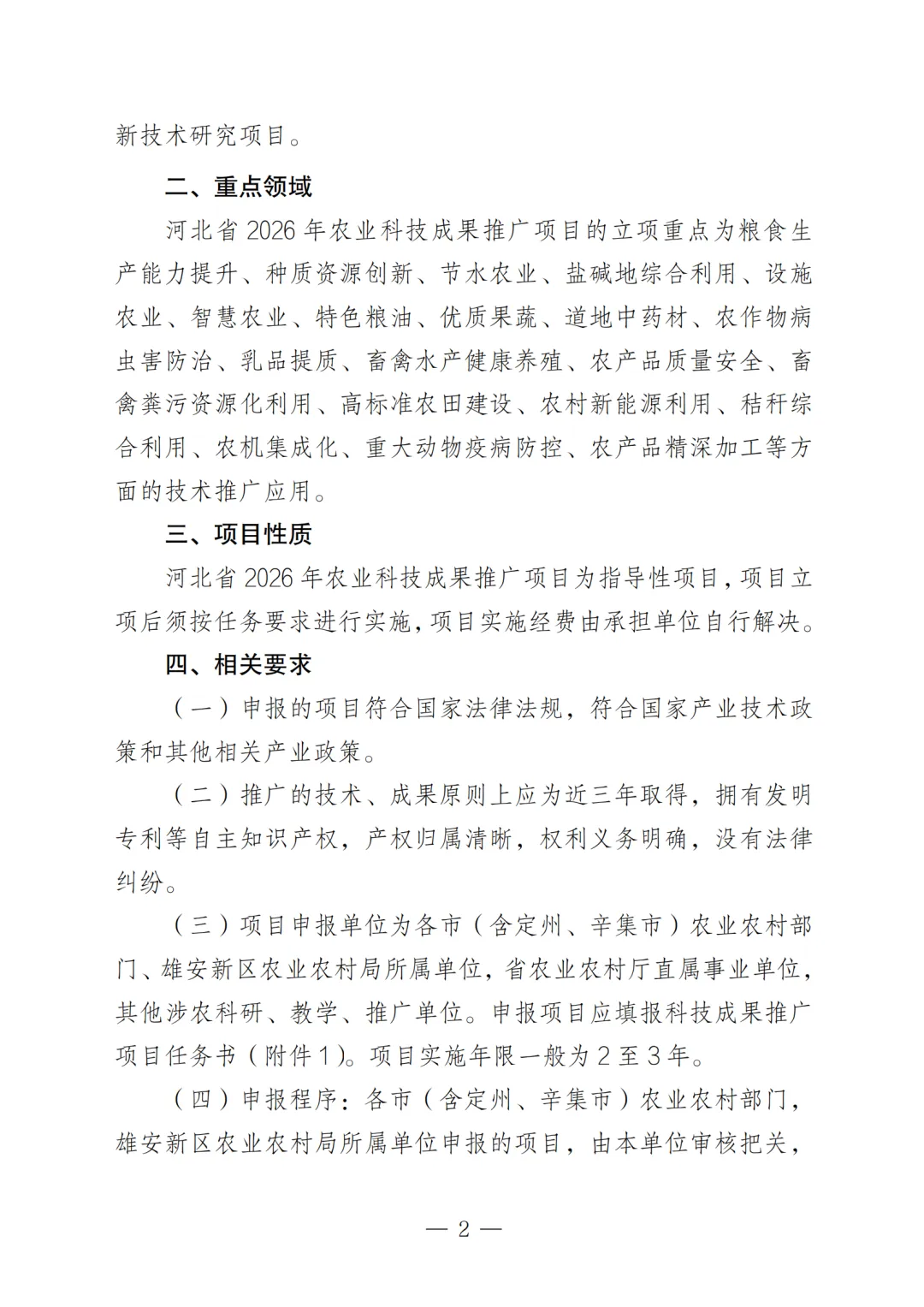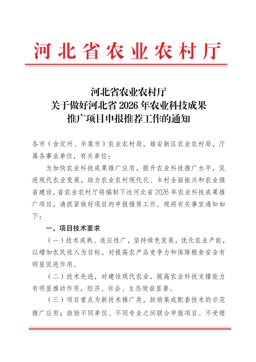 关于做好河北省2026年农业科技成果推厂项日申报推荐一作的通知
