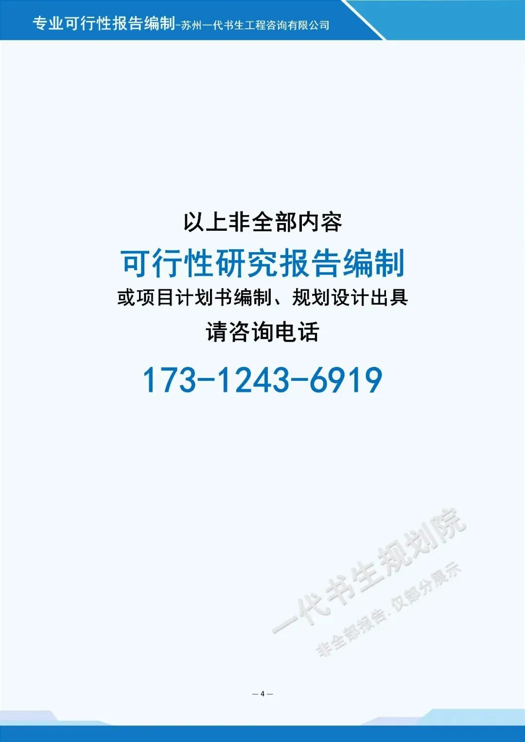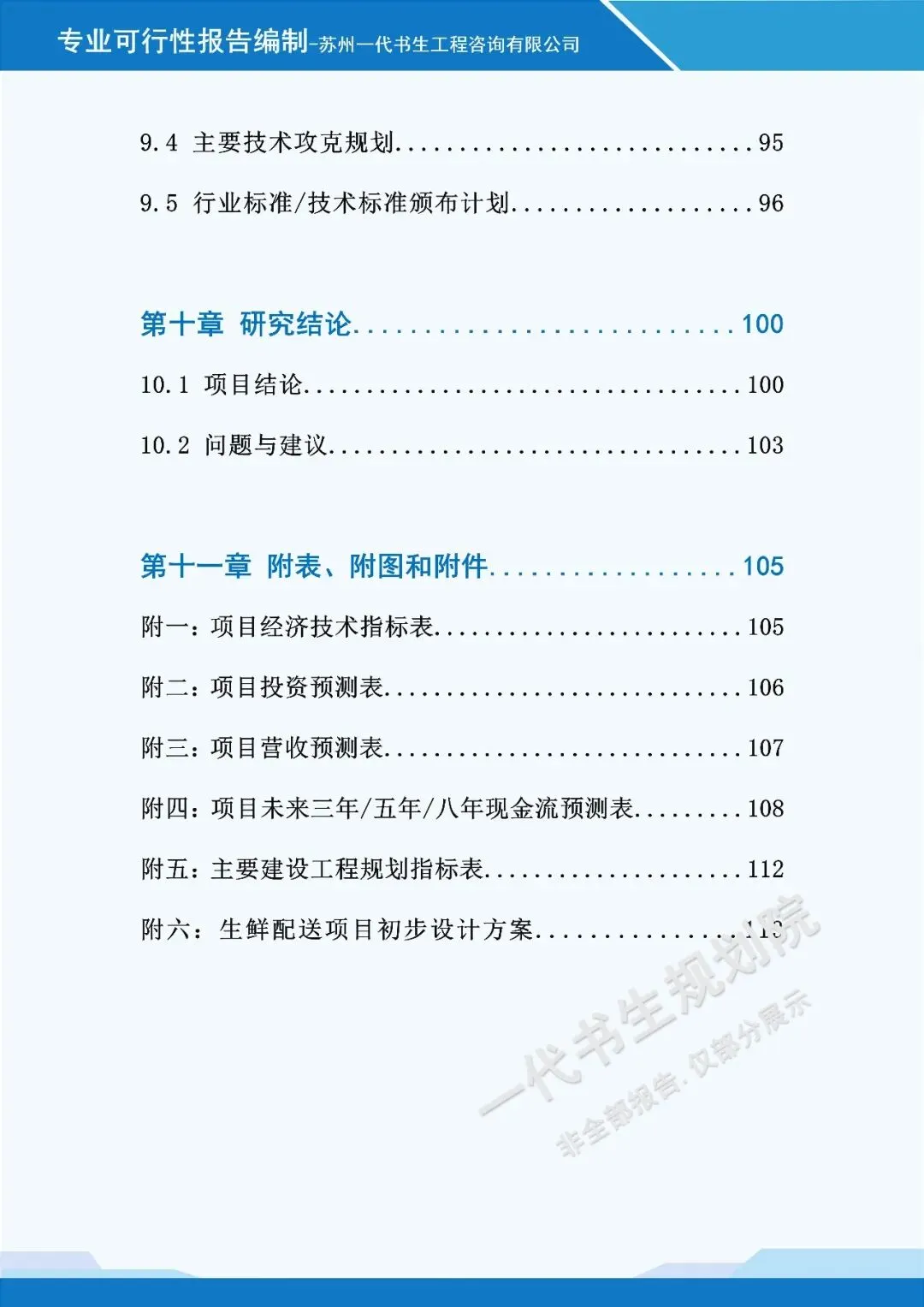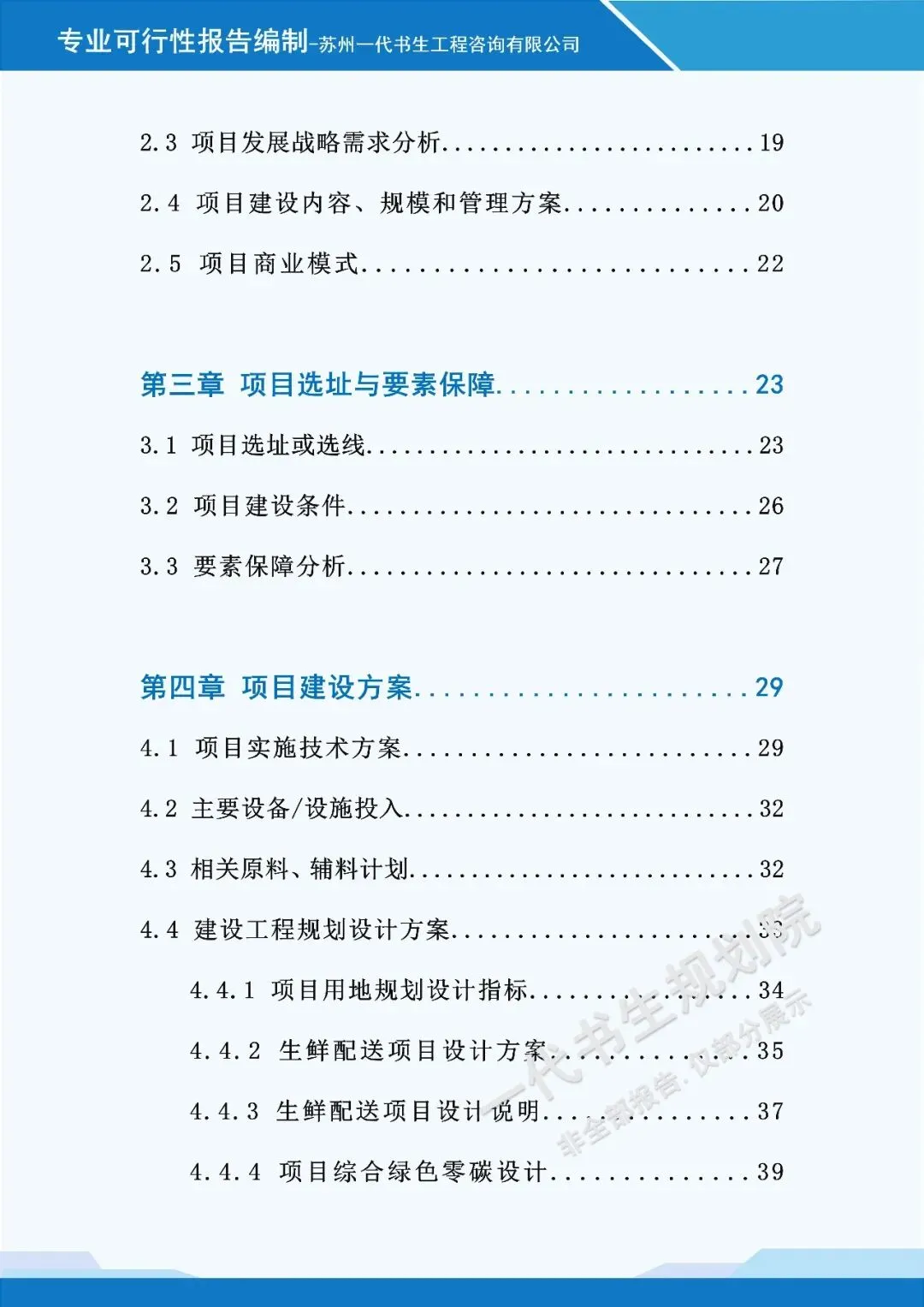 以下是《生态农业园区+生鲜配送项目可行性研究报告》的案例展示,该项目可行性报告编制公司为苏州一代书生工程咨询有限公司。项目可行性研究报告编制、项目计划书编写,请联系:17312436919。以上生鲜配送基地建设项目可行性研究报告是由苏州一代书生工程咨询有限公司出具。苏州一代书生工程咨询有限公司,是集市场评估、产业策划与规划设计于一体,可为项目提供建设前期评估、落地规划设计,出具成果有:《行业市场调研分析报告》、《项目建议书(项目计划书)》、《项目可行性研究报告》、《项目初步设计方案》、《项目概念规划设计方案》、《项目建设总体规划设计方案》、《地区/片区/项目总体产业发展规划方案》等。