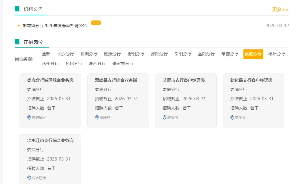 原标题:中国农业银行湖南省分行2026年度春季招聘公告