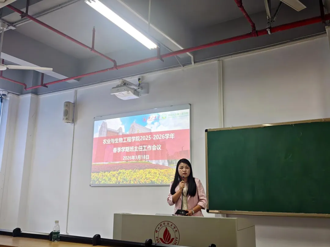 为全面部署新学期学生管理与育人工作,3月18日下午,农业与生物工程学院于C7-119会议室召开2025-2026年春季学期班主任工作会议。学院党委副书记黄丽萍出席会议,全体班主任及辅导员共同参会。