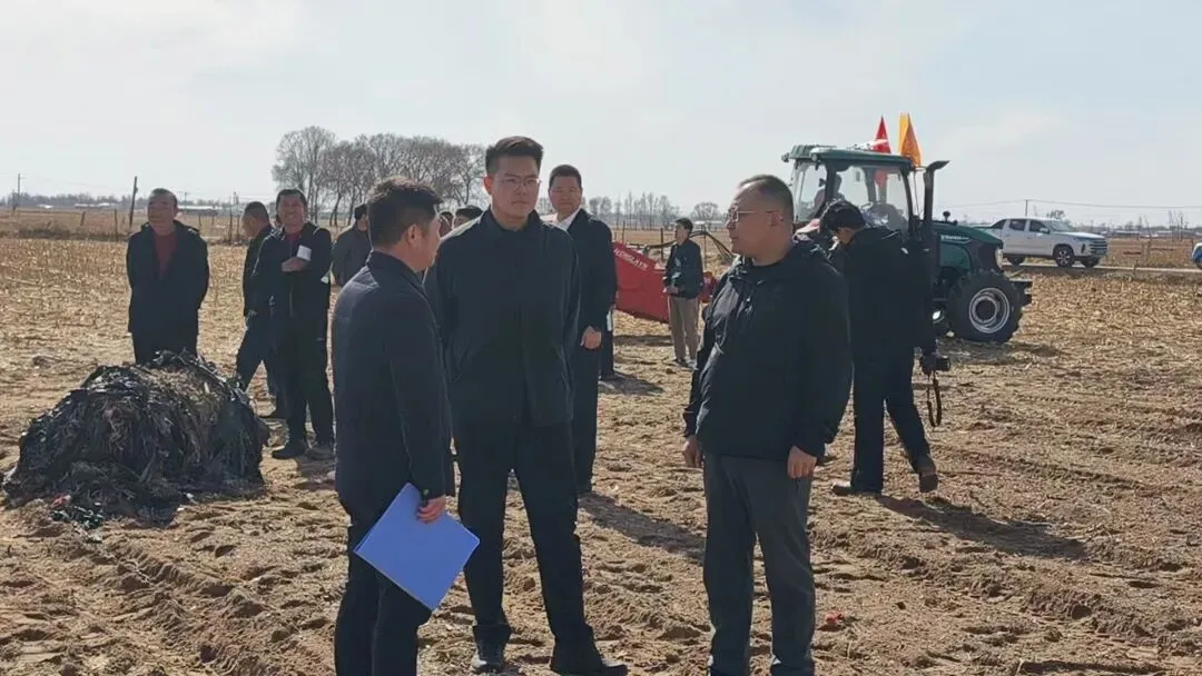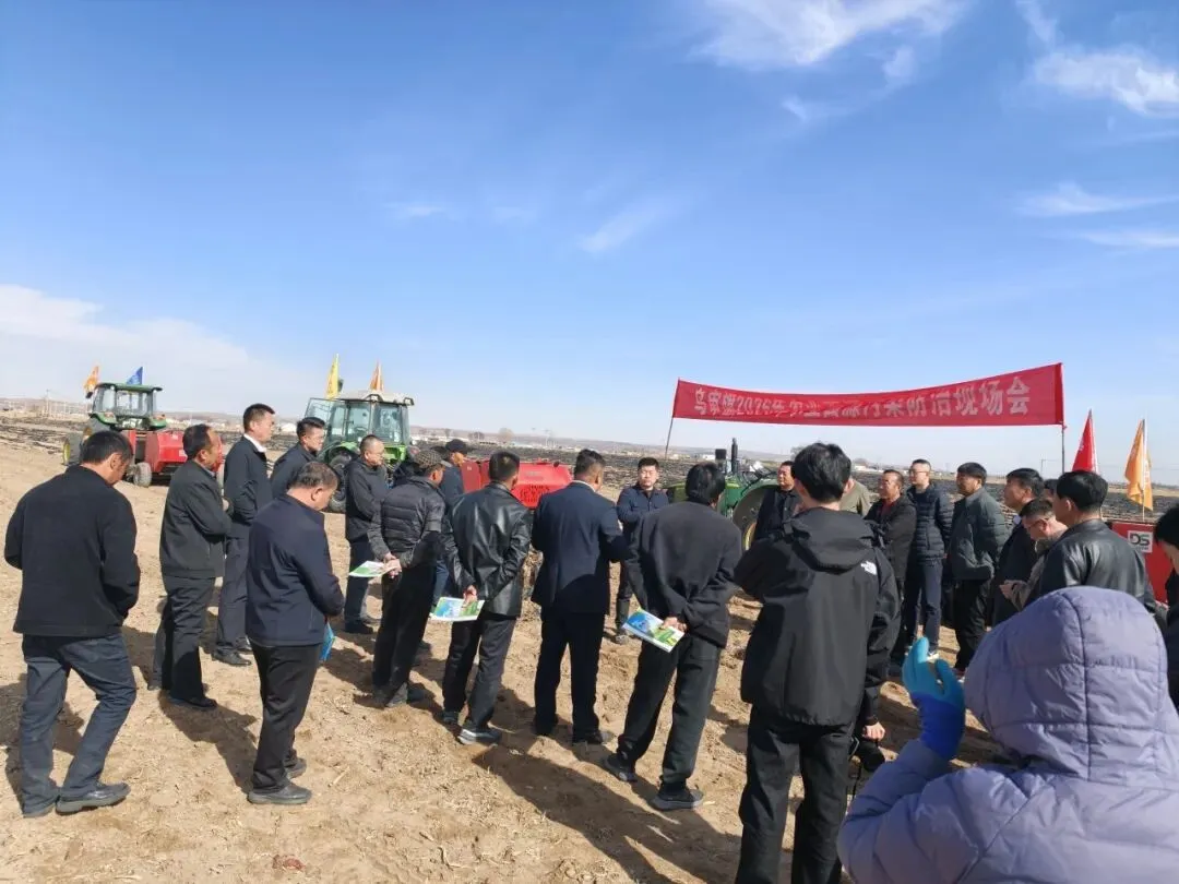 残膜捡拾机械作业演示成为现场焦点。多台升运链式、转笼式及残膜打捆一体机等回收设备同步作业,现场完成残膜捡拾、打捆全流程作业,直观展示了各类设备的作业效率与实际效果。旗农牧局工作人员详细介绍2026年地膜科学使用回收工作举措,解读相关政策扶持内容,以“源头管控—科学使用—规范回收—资源化利用”为核心,构建农膜污染全链条治理体系。源头管控方面,联合执法部门对全旗农资经营企业开展专项检查,严禁0.01毫米以下非国标地膜流入市场;科学使用方面,全旗计划推广加厚高强度地膜3万亩;规范回收方面,组织开展全域机械化回收试点,将全旗覆膜地块全部纳入项目支持范围;资源化利用方面,对回收残膜实行分类处置,较完整的残膜用于再生造粒,破碎严重的残膜用于制粒燃烧发电,实现变废为宝。
