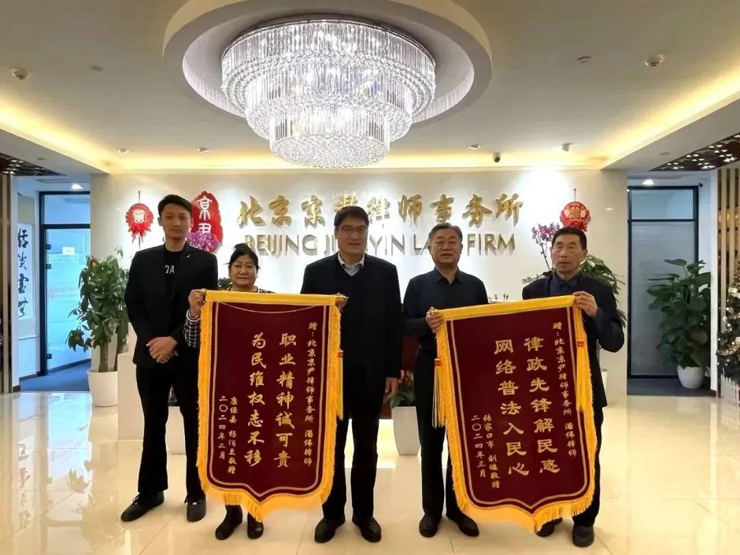 双面锦旗,双份认可:京尹律所主任律师曲大富、查嫣媛律师获赠锦旗!
