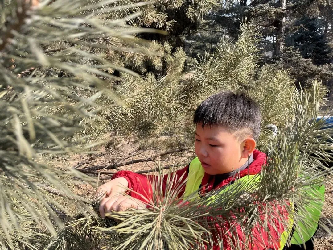 活动当天风和日丽,孩子们在老师的引领下,漫步在林间小路上,听老师讲解各种树木知识,了解不同松树的区别。