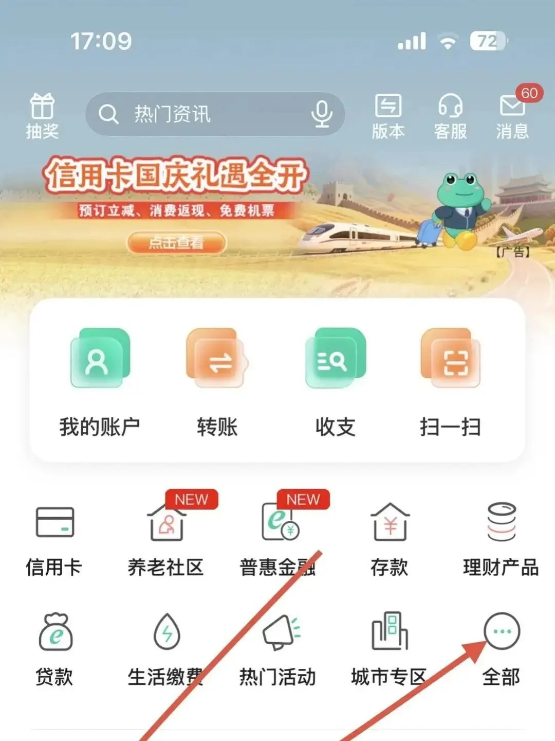 1️⃣、打开农行APP首页