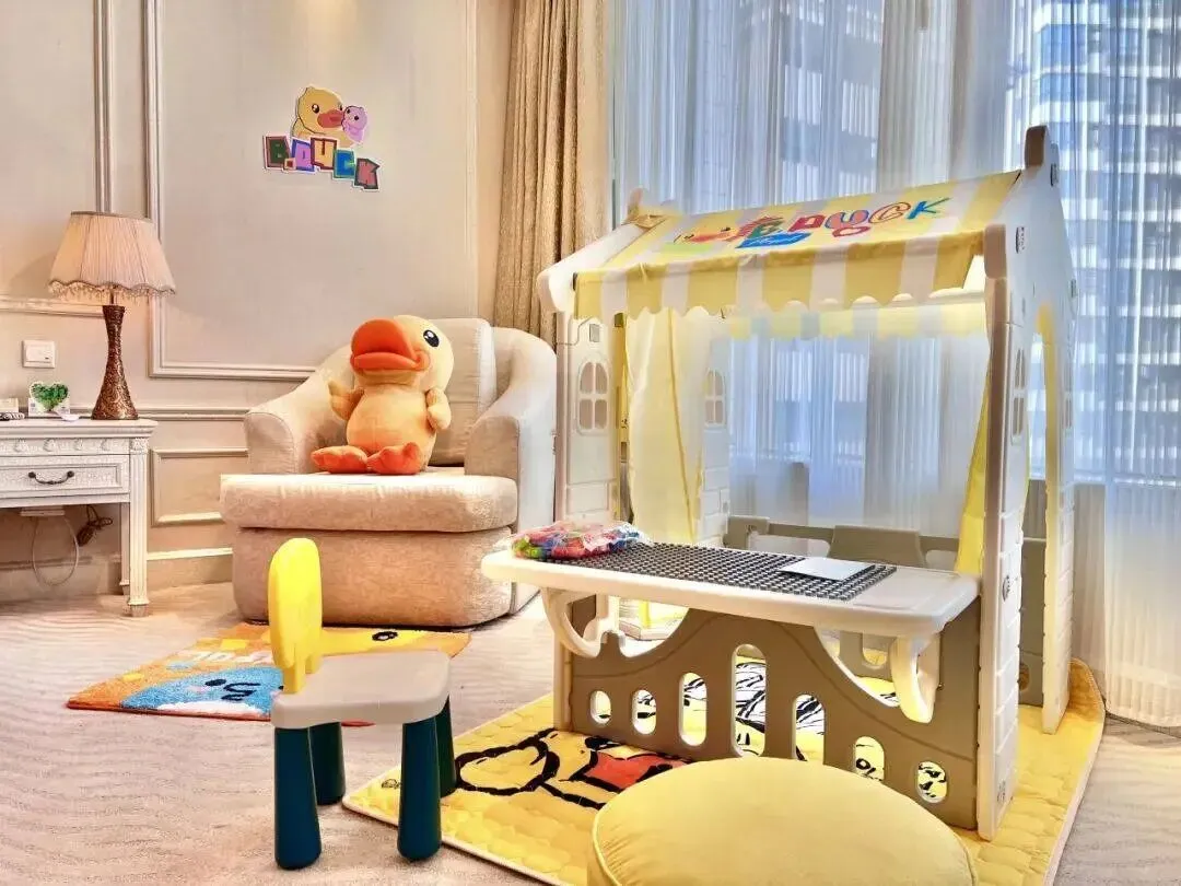 惊喜满满的小黄鸭主题亲子房为您守候