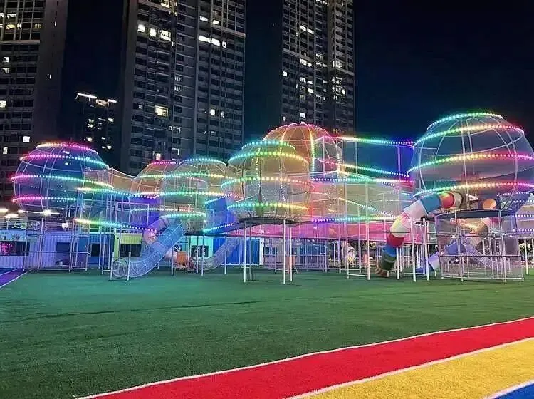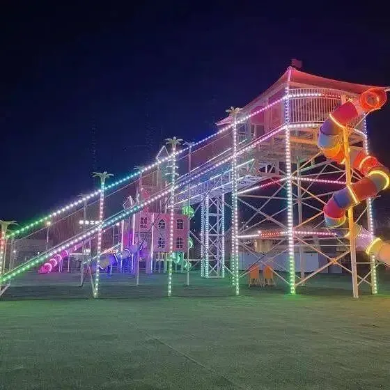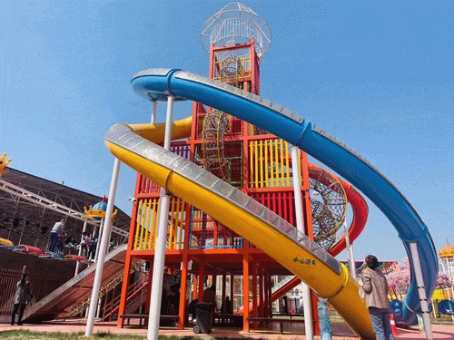 色彩绚丽的滑道像一道彩虹挂在高处