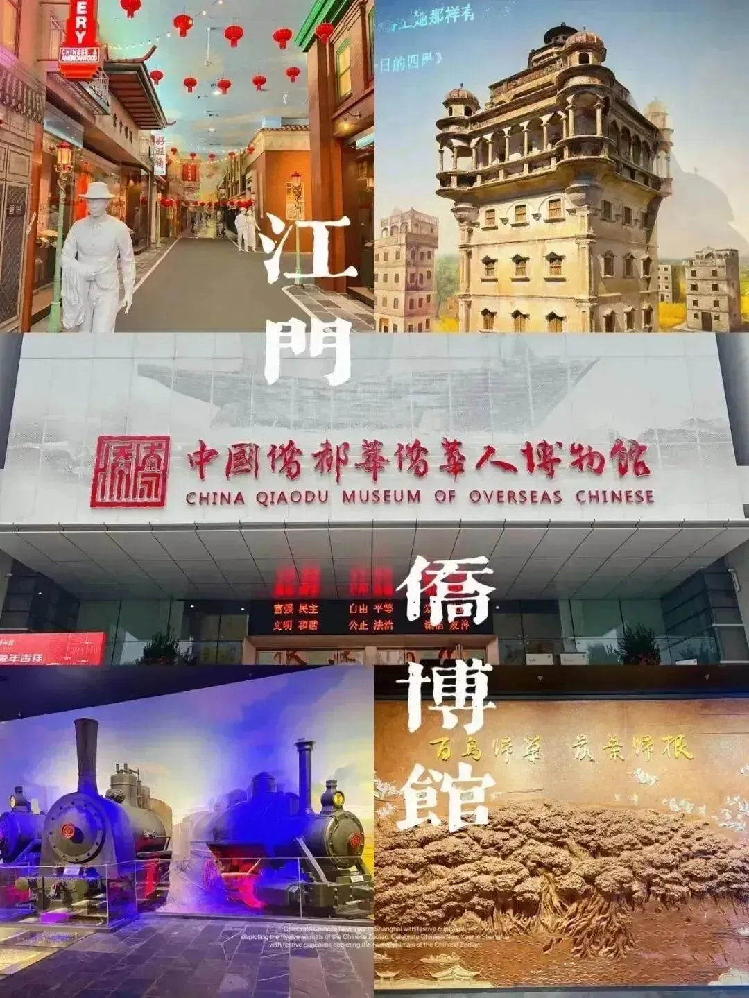 该馆固定陈列为“根在侨乡”江门华侨华人历史展,展出展品约1200件(套).由“序厅”-“远赴重洋”-“拼搏海外”-“融通中外”-“推翻帝制”-“铸就丰碑”-“追求光明”-“中华儿女大团结”-“结束厅”等九个部分组成,展示了江门籍华侨华人史迹。