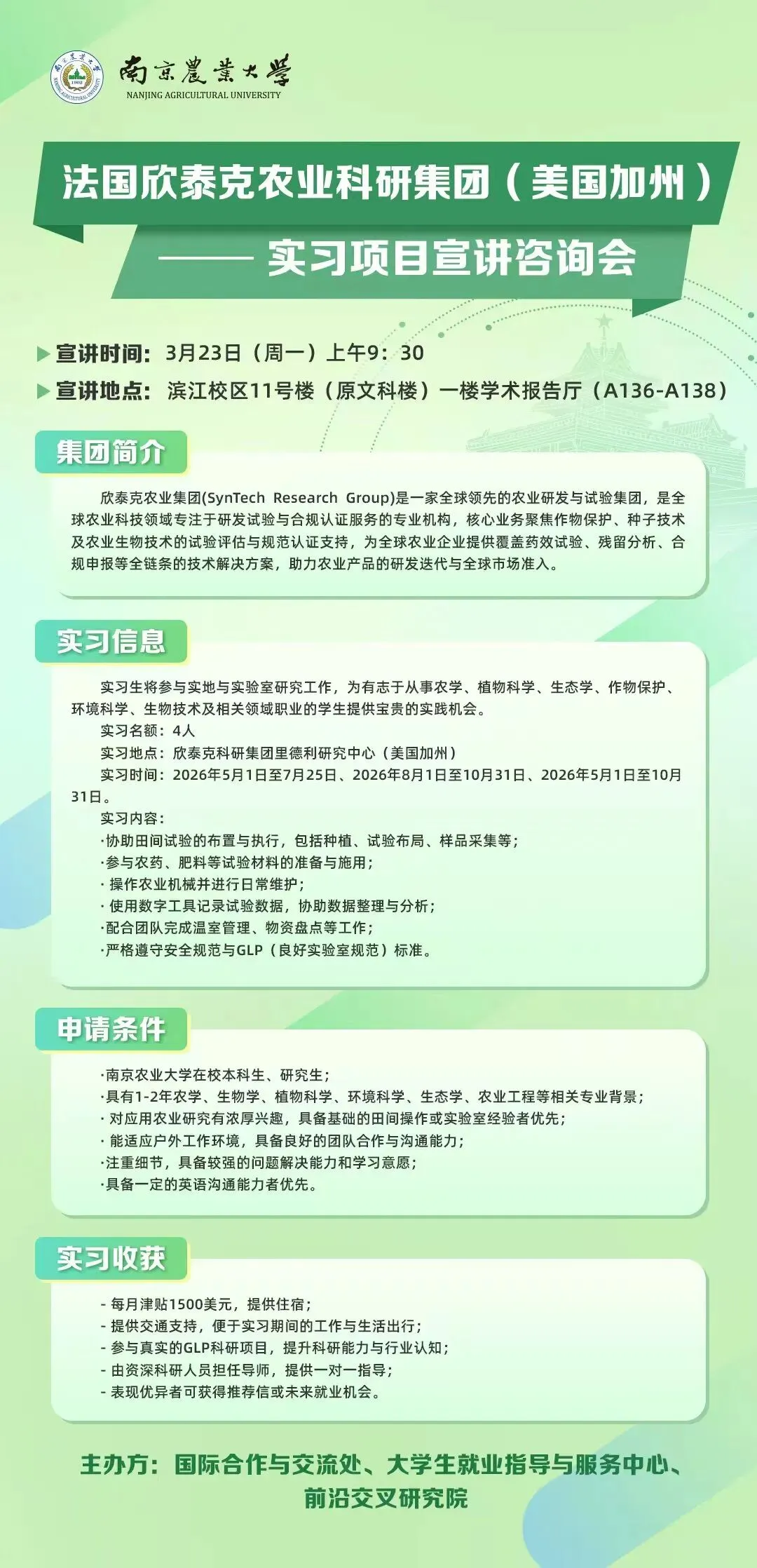 法国欣泰克农业科研集团(美国加州)实习项目宣讲咨询会