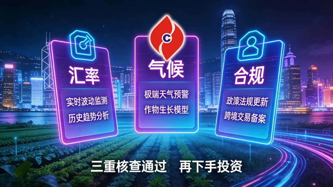严控结算周期:拒绝回款周期超过3个月的项目,农业本身回款慢,周期越长,汇率波动风险越大,优选1-2个月短周期结算标的;