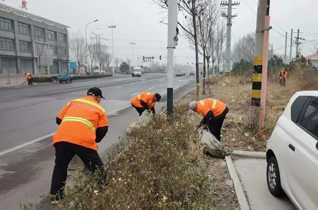 ▲开展潍九路、寒双路两侧卫生清理工作