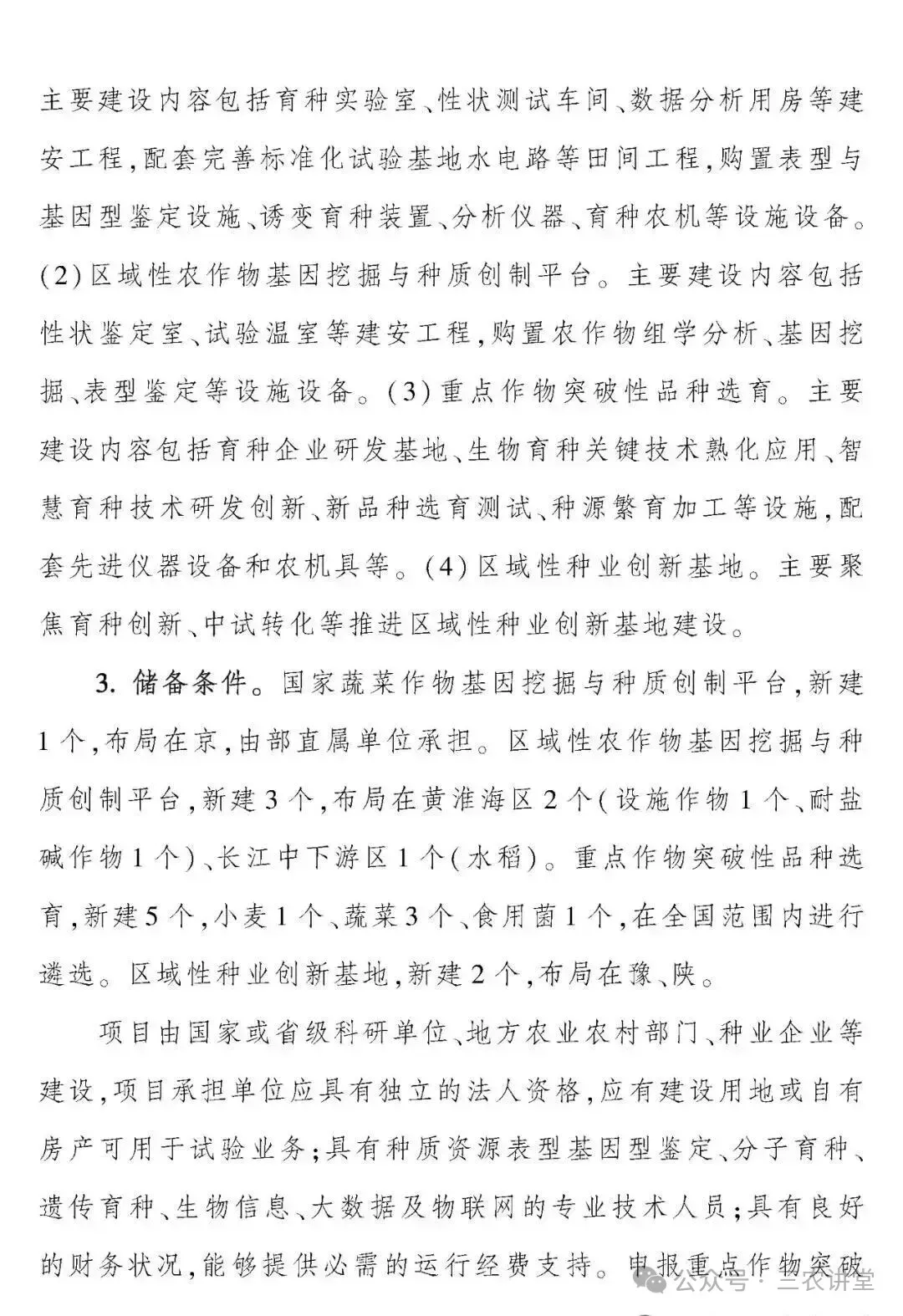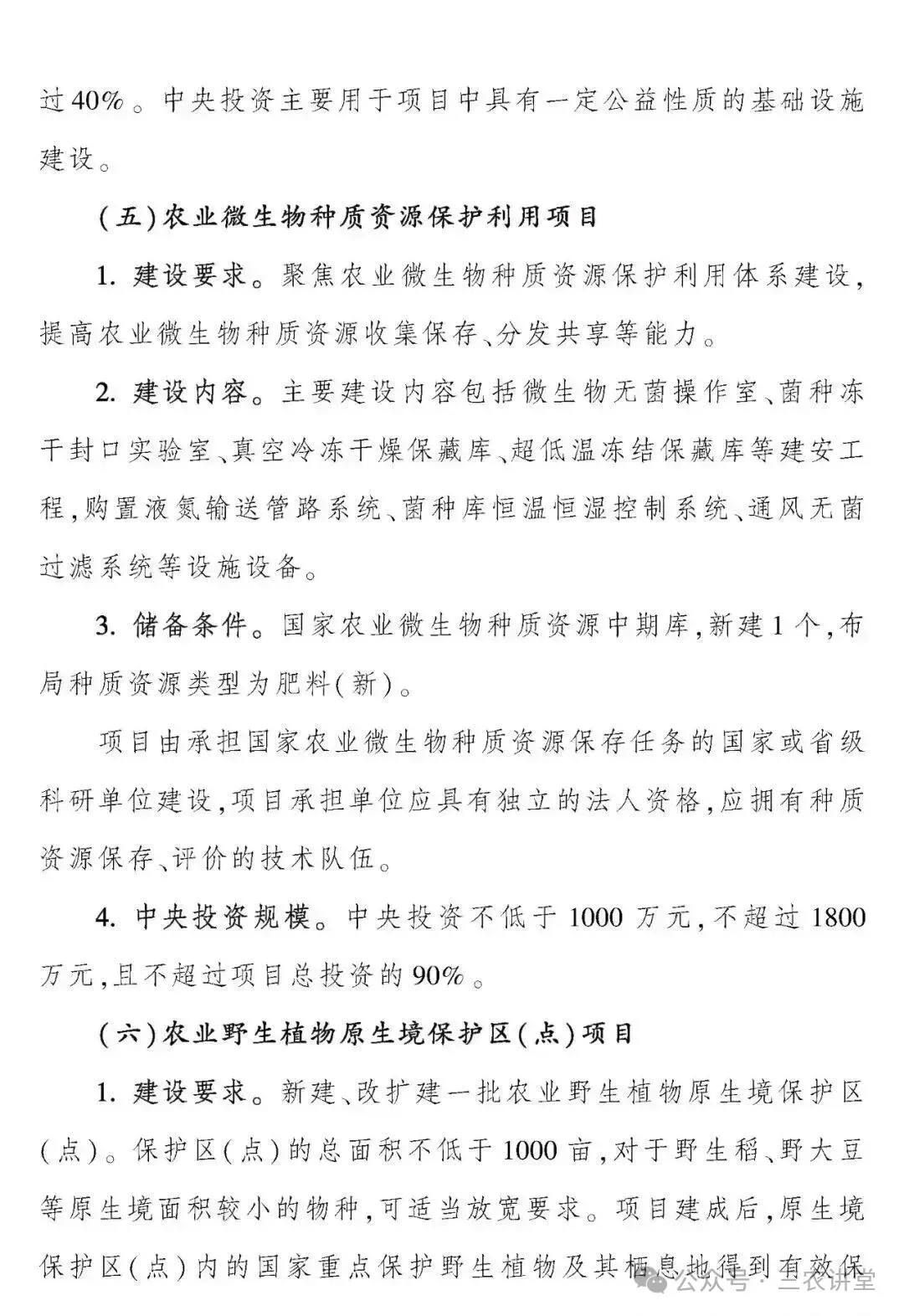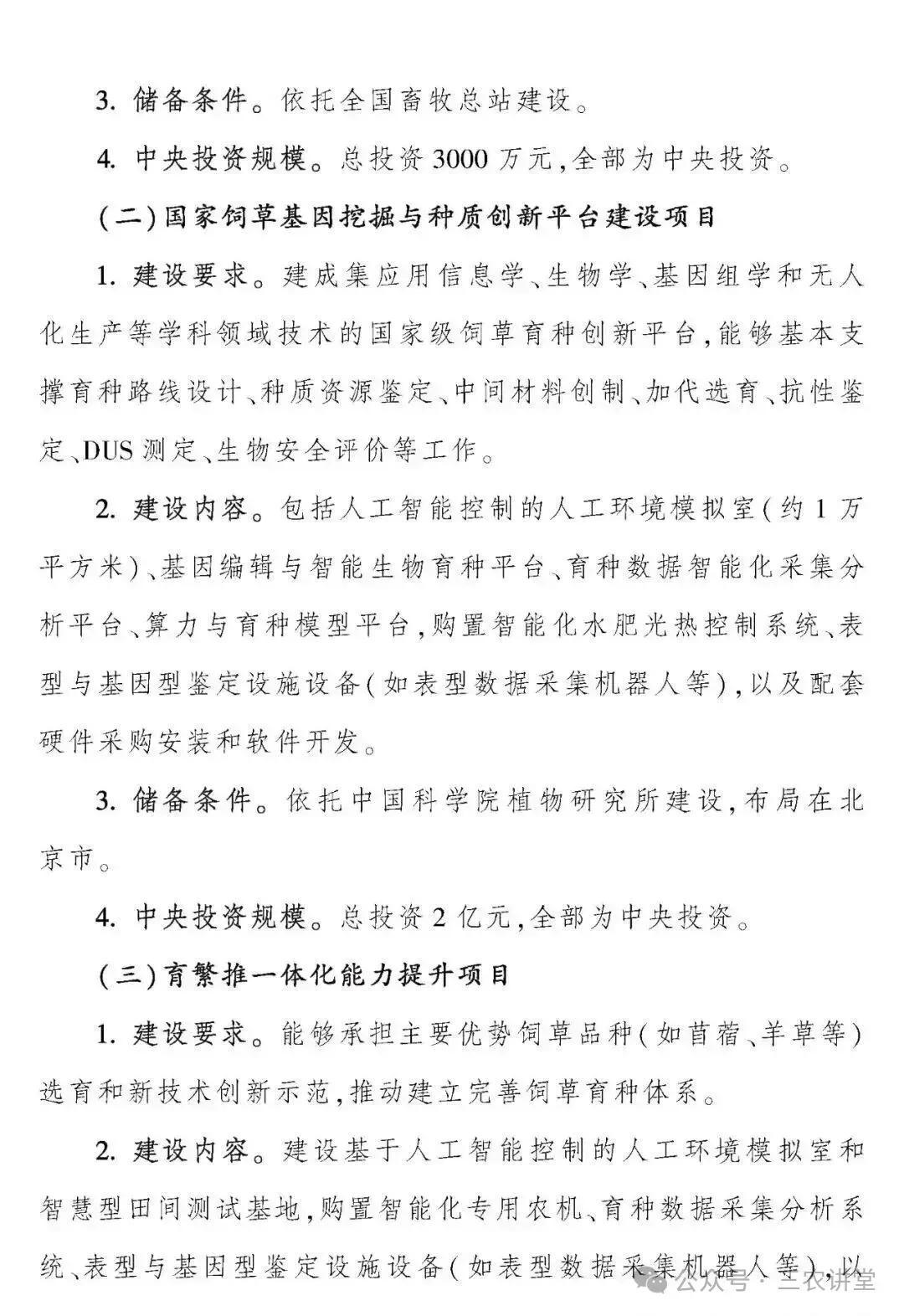通知要求聚焦农业强国建设, 认真谋划标志性、 基础性、 战略性重大工程项目。 要着眼 2026 年和“ 十五五” 时期, 对标国家重大战略规划和重点领域安全能力建设, 结合本地区农业基础设施短板弱项和实际需要, 围绕现代种业、动植物保护、面源污染治理、草原畜牧业转型升级、农业科技创新能力条件建设、天然橡胶生产能力建设等方面, 既立足当前、 又着眼长远, 着力谋划储备一批标志性重大项目。 其他类型项目根据实际,后续另行开展储备。