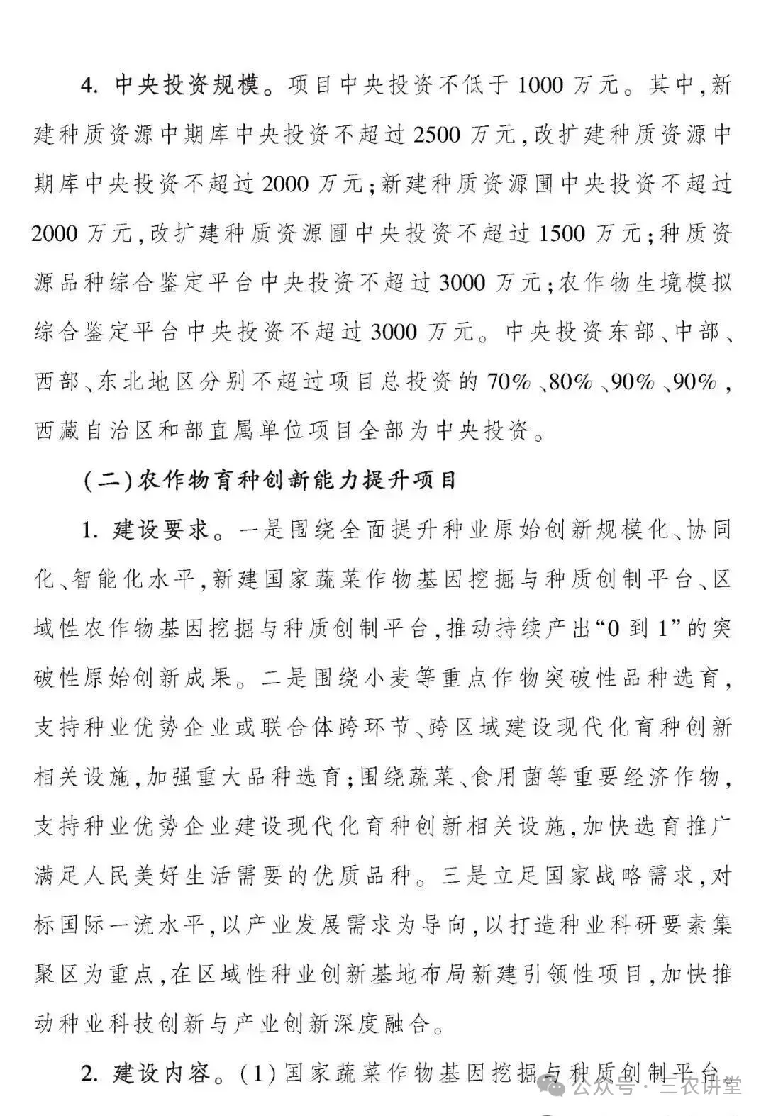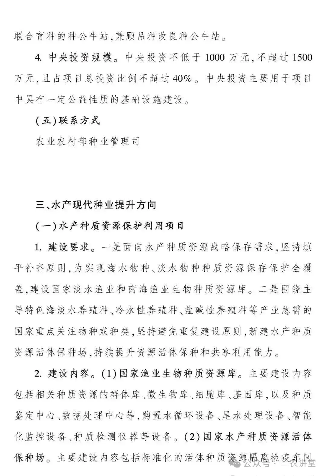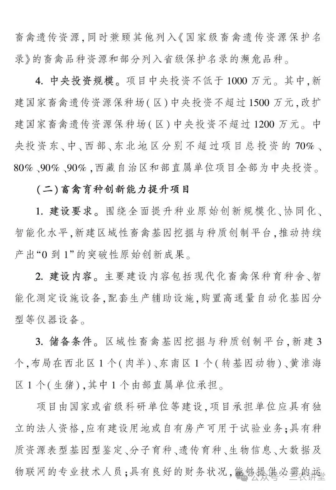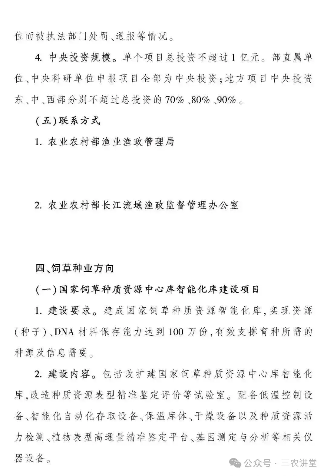 通知要求聚焦农业强国建设, 认真谋划标志性、 基础性、 战略性重大工程项目。 要着眼 2026 年和“ 十五五” 时期, 对标国家重大战略规划和重点领域安全能力建设, 结合本地区农业基础设施短板弱项和实际需要, 围绕现代种业、动植物保护、面源污染治理、草原畜牧业转型升级、农业科技创新能力条件建设、天然橡胶生产能力建设等方面, 既立足当前、 又着眼长远, 着力谋划储备一批标志性重大项目。 其他类型项目根据实际,后续另行开展储备。