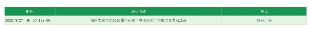 【双选会】湖南农业大学2026届毕业生“春风行动”大型综合类双选会邀请函