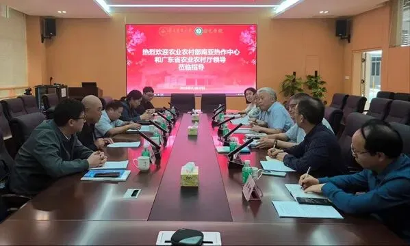 3月20日,农业农村部南亚热带作物中心副主任黄辉、广东省农业农村厅二级巡视员曾思坚一行莅临我院,专题调研指导荔枝农残治理工作。农业农村部南亚热带作物中心热作发展处副处长(主持工作)郑红裕,广东省农业农村厅种植业管理处副处长谭琼,广东省农业有害生物预警防控中心科员李睿,国家荔枝龙眼产业技术体系首席科学家、园艺学院院长胡桂兵,国家荔枝龙眼产业技术体系岗位科学家、广东省农业科学院植物保护研究所李敦松、王思威、姚琼,植保学院姜子德、习平根等出席会议。