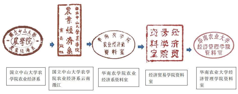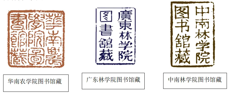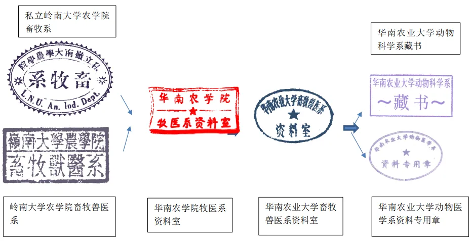 图书馆精心收集、筛选梳理了华南农业大学百十五年发展历程中五个重要时期图书馆及院系资料室收藏的书刊文献上的100多个藏书章。这一枚枚不同时期,不同来源,不同形状、颜色、内容、字体的藏书章记录了图书馆的藏书递藏变化,生动展现了图书馆从无到有、从中断到恢复、从小到大的点滴发展历程,追溯了学校多源汇流几度变迁易名的发展史,更成为见证百十五年来学校及学科发展沿革变迁的微刻史书。