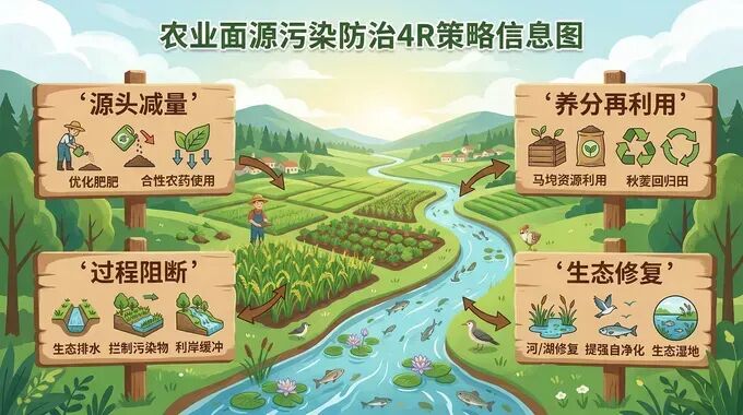 导语:当我们在餐桌上享受丰收的喜悦时,很少有人会注意到,农田里过量的化肥和农药正随着雨水与灌溉悄然流失。这种“看不见的营养过剩”,被称为农业面源污染,已成为威胁水生态环境的重要隐患。今天,我们将带您深入田间地头,揭秘一套具有中国特色的“4R”生态密码。