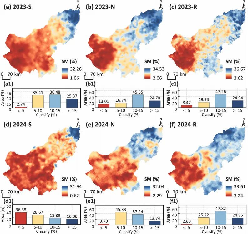 高时空分辨率和高精度多层土壤水分是农业生产、水资源管理及全球气候至关重要的参数。然而土壤水分估算受当前卫星传感器时空分辨率和土壤类型、气候和地形等多因素制约,对土壤水分反演算法要求不断提升。同时,近年来随着降水胁迫、畜牧业和灌木入侵增加,锡林郭勒草原地区出现水资源利用不合理、生态退化和土壤水分不足等严重草原问题。