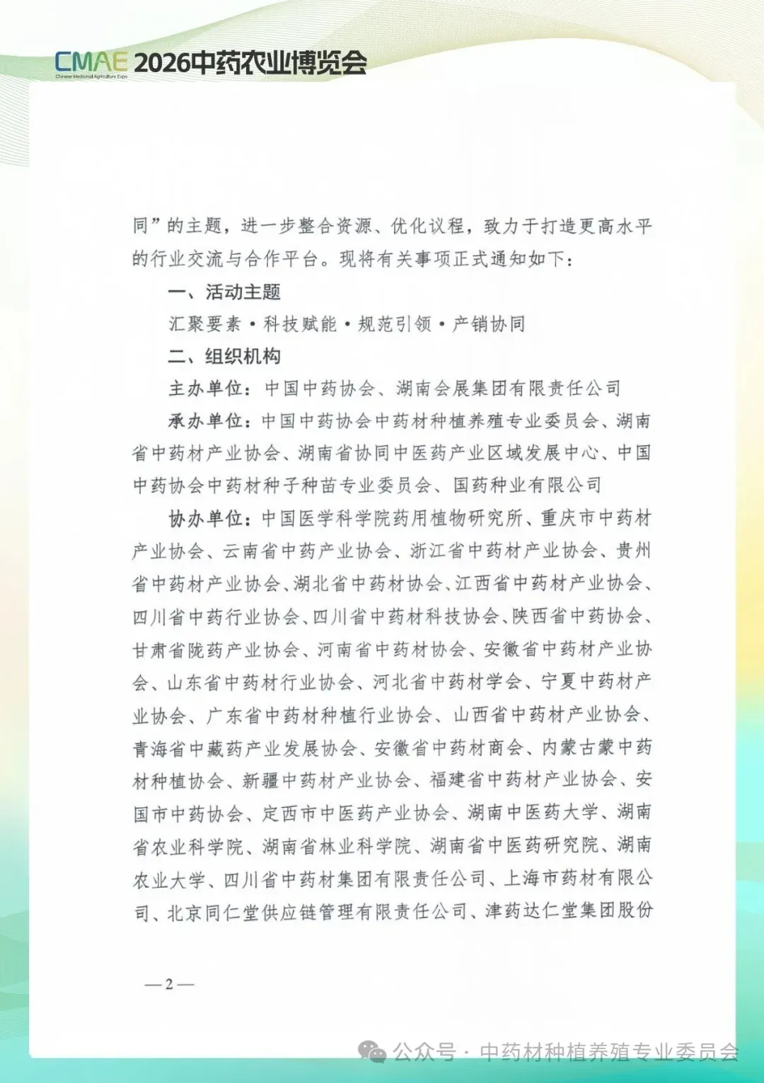 协办单位:中国医学科学院药用植物研究所、重庆市中药材产业协会、云南省中药产业协会、浙江省中药材产业协会、贵州省中药材产业协会、湖北省中药材协会、江西省中药材产业协会、四川省中药行业协会、四川省中药材科技协会、陕西省中药协会、甘肃省陇药产业协会、河南省中药材协会、安徽省中药材产业协会、山东省中药材行业协会、河北省中药材学会、宁夏中药材产业协会、广东省中药材种植行业协会、山西省中药材产业协会、青海省中藏药产业发展协会、安徽省中药材商会、内蒙古蒙中药材种植协会、新疆中药材产业协会、福建省中药材产业协会、安国市中药协会、定西市中医药产业协会、湖南中医药大学、湖南省农业科学院、湖南省林业科学院、湖南省中医药研究院、湖南农业大学、四川省中药材集团有限责任公司、上海市药材有限公司、北京同仁堂供应链管理有限责任公司、津药达仁堂集团股份有限公司药材公司、无限极(中国)有限公司、兰州佛慈制药股份有限公司、山西振东健康产业集团、天津天士力现代中药资源有限公司、浙农集团股份有限公司、九信中药集团有限公司、湖北农业发展集团有限公司、甘肃奇正实业有限公司、湖南医药集团有限公司、厦门中药厂有限公司、广州守创中药有限公司、湖南省健康产品与生命科技工程技术研究中心、湖南省医药行业协会中药饮片产业分会、湖南药品流通行业协会、新华中医药(北京)有限公司、亳州市药通信息咨询有限公司、成都天地网信息科技有限公司、安徽省跑药道网络科技有限责任公司、甘肃陇萃源中药材信息科技有限公司、康美中药材数据信息服务有限公司等