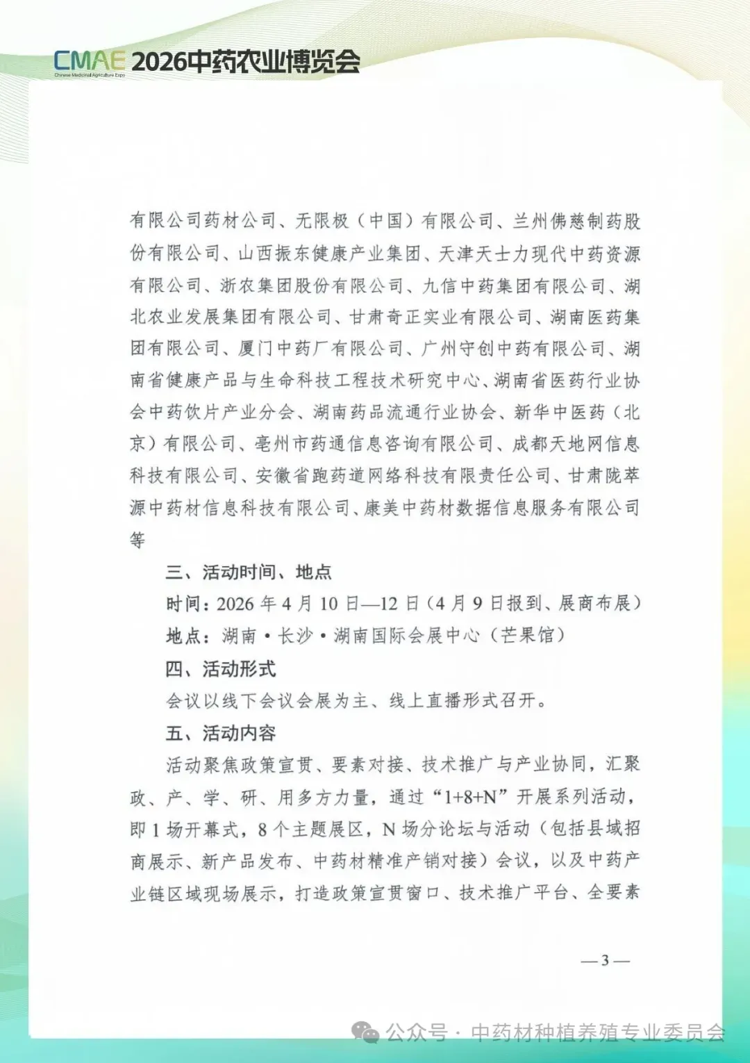 活动聚焦政策宣贯,要素对接,技术推广与产业协同,汇聚政,产,学,研,用多方力量,通过"1+8+N"开展系列活动,即1场开幕式,8个主题展区,N场分论坛与活动(包括县域招商展示,新产品发布,中药材精准产销对接)会议,以及中药产业链区域现场展示,打造政策宣贯窗口,技术推广平台,全要素对接枢纽,服务中药农业高质量发展