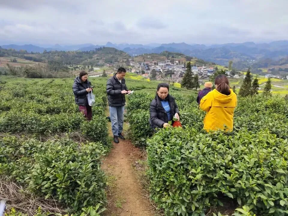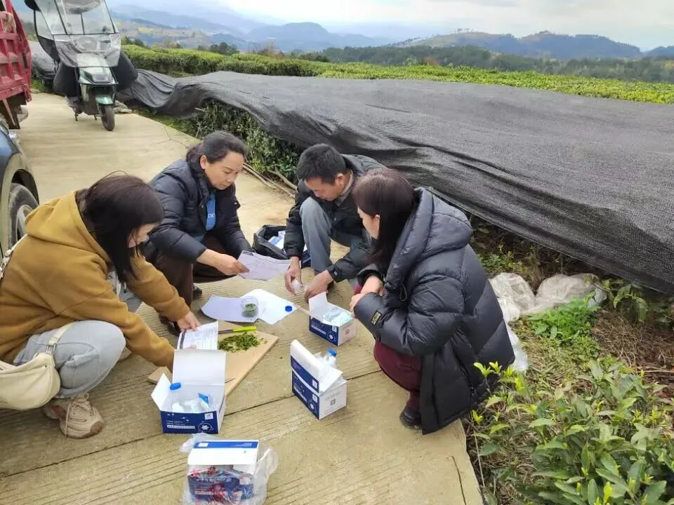 种植业管理科、农产品质量安全检测站到匀东镇开展茶叶胶体金快速检测。