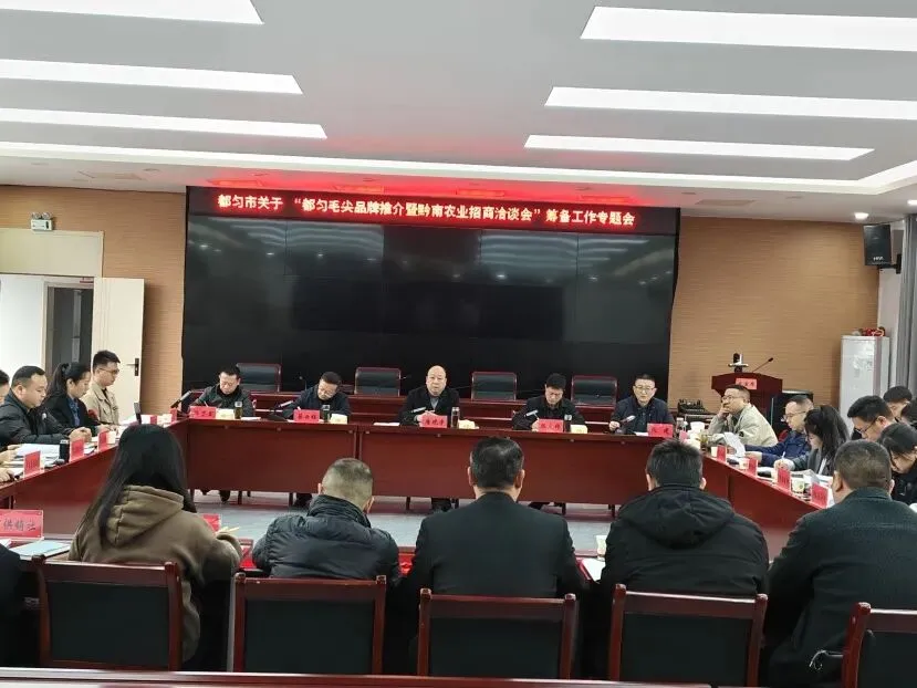 市人民政府副市长张建主持召开都匀市关于“都匀毛尖品牌推介暨黔南州农业招商洽谈会”筹备工作专题会,市委副书记、市委政法委书记唐晓宇,市人大常委会副主任陈定锦,市政协副主席杨宇言等出席,市农业农村局党组书记、局长蔡莉玲参加。