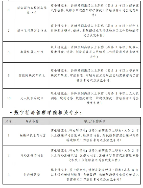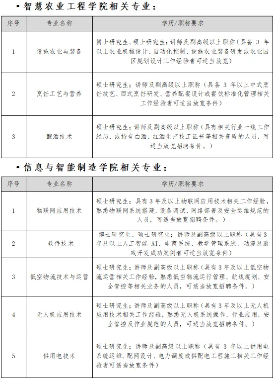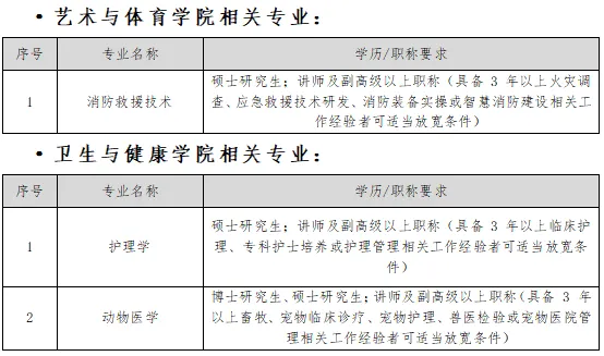 各专业计划招聘及储备2 名,(注:招聘人数可根据该专业招生情况适当增减)