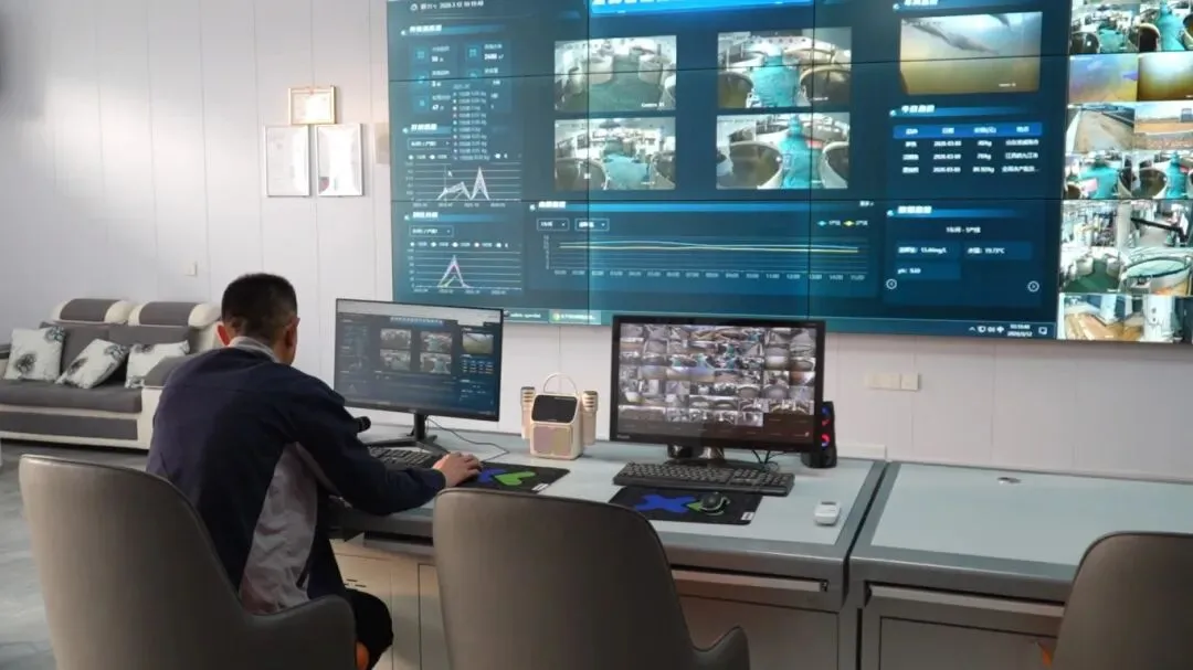 与传统养殖模式不同,宏峰渔业全面搭载智慧渔业系统,对水质、水温、溶氧量等关键指标实时监测,数据同步上传至管控后台。一旦指标异常,系统自动预警,工作人员第一时间处置,以全天候、智能化管理为鱼类健康生长保驾护航,从源头提升水产品品质与食品安全水平。