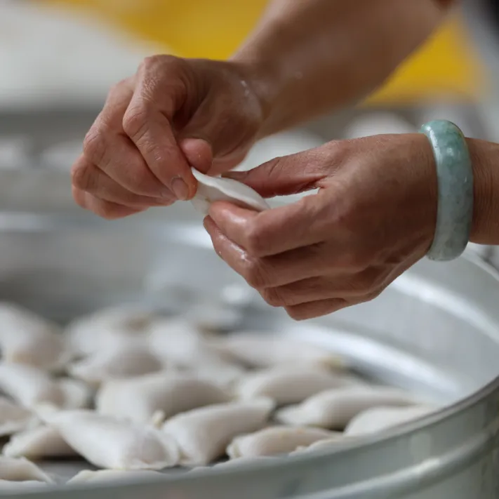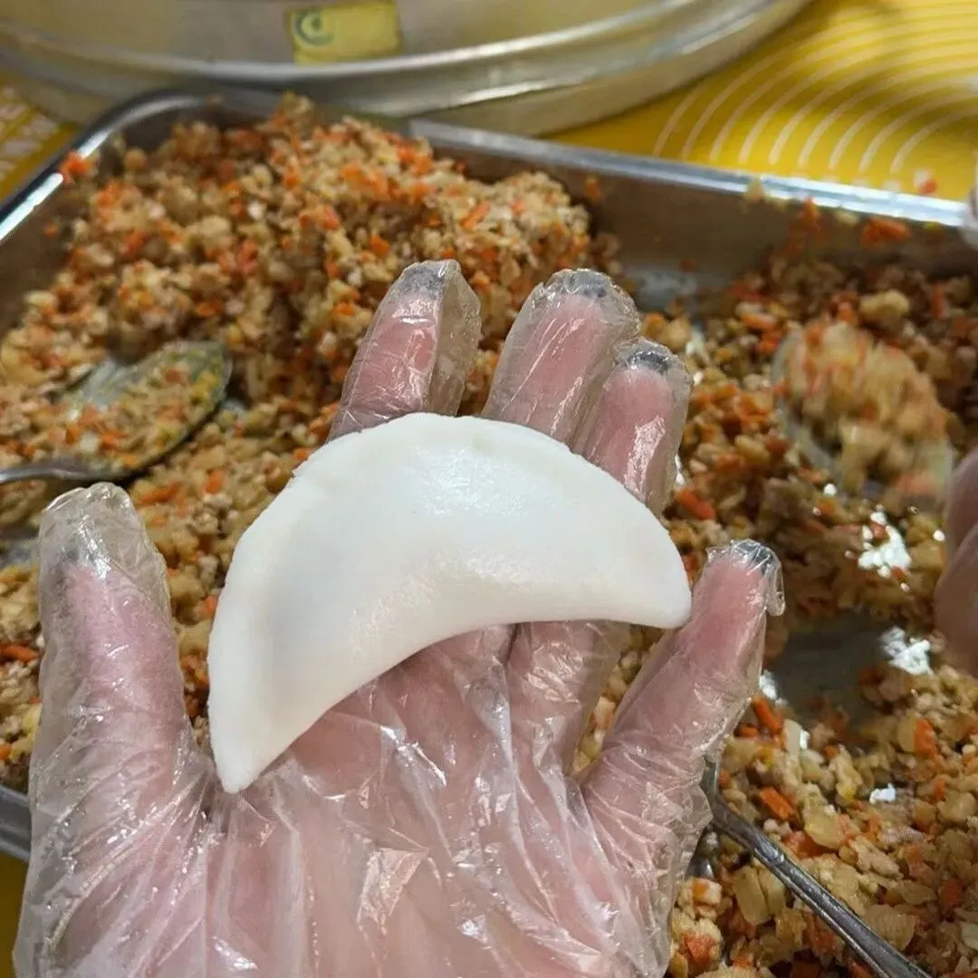 活动现场,大家围坐一堂,纷纷挽起袖子体验包角仔的乐趣。