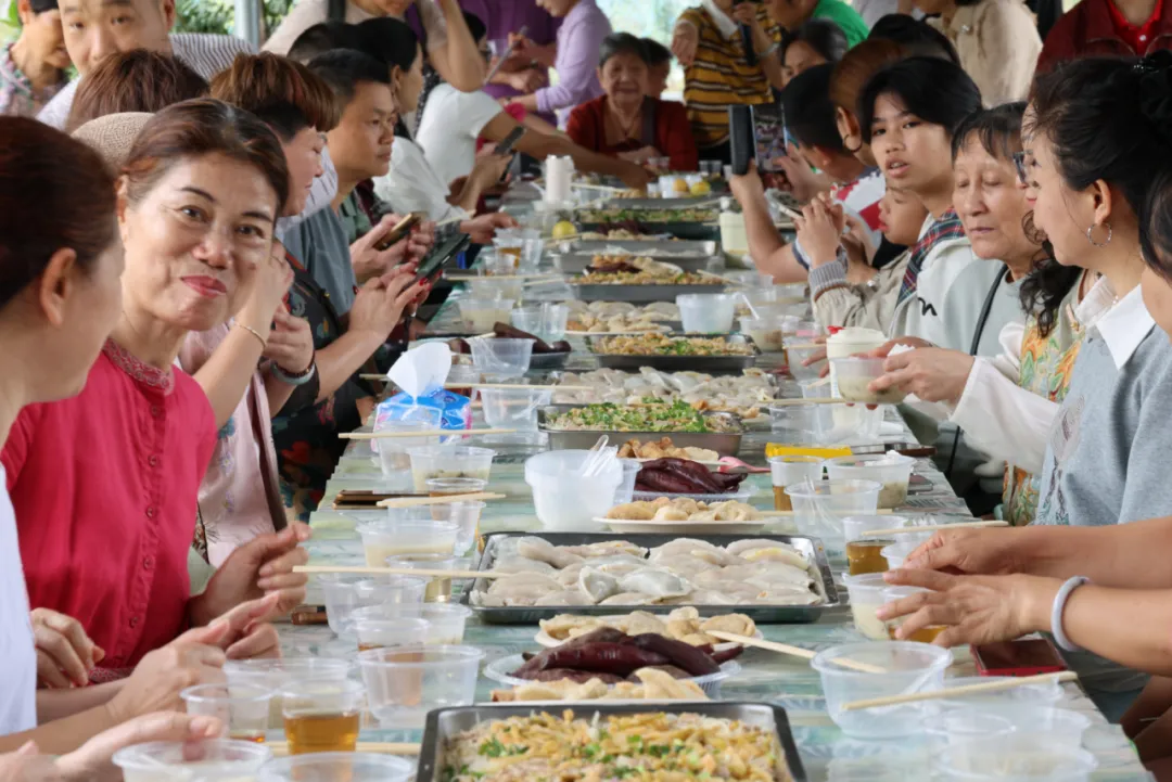 大家一边包一边聊,欢声笑语不断,其乐融融!