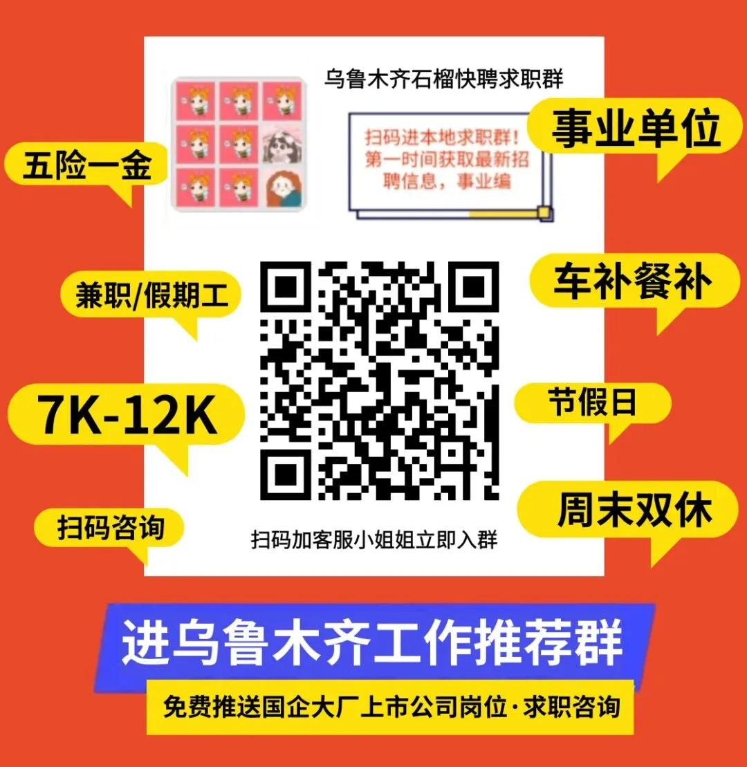 ☟戳下方“阅读原文”,进入乌鲁木齐石榴快聘!