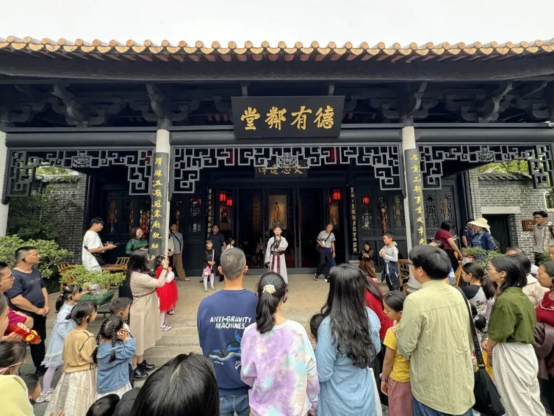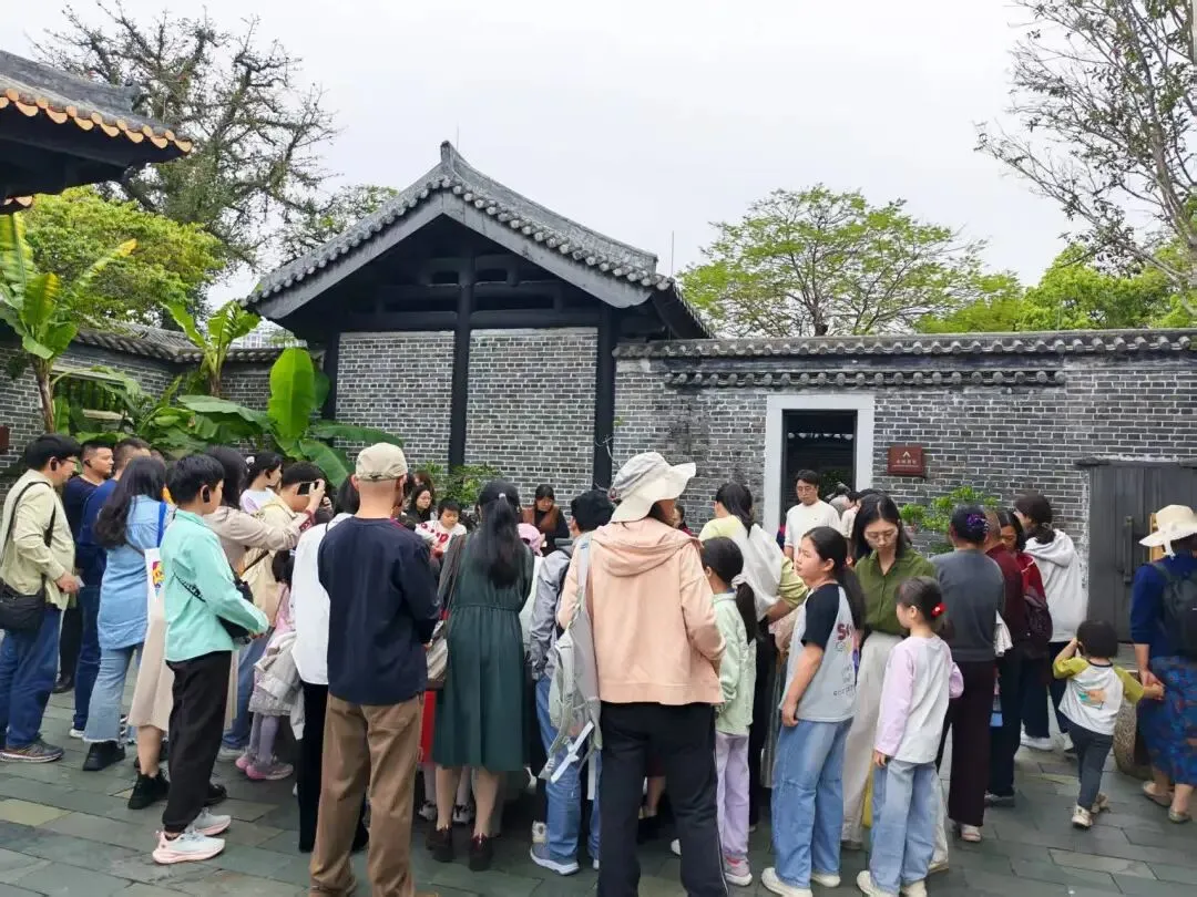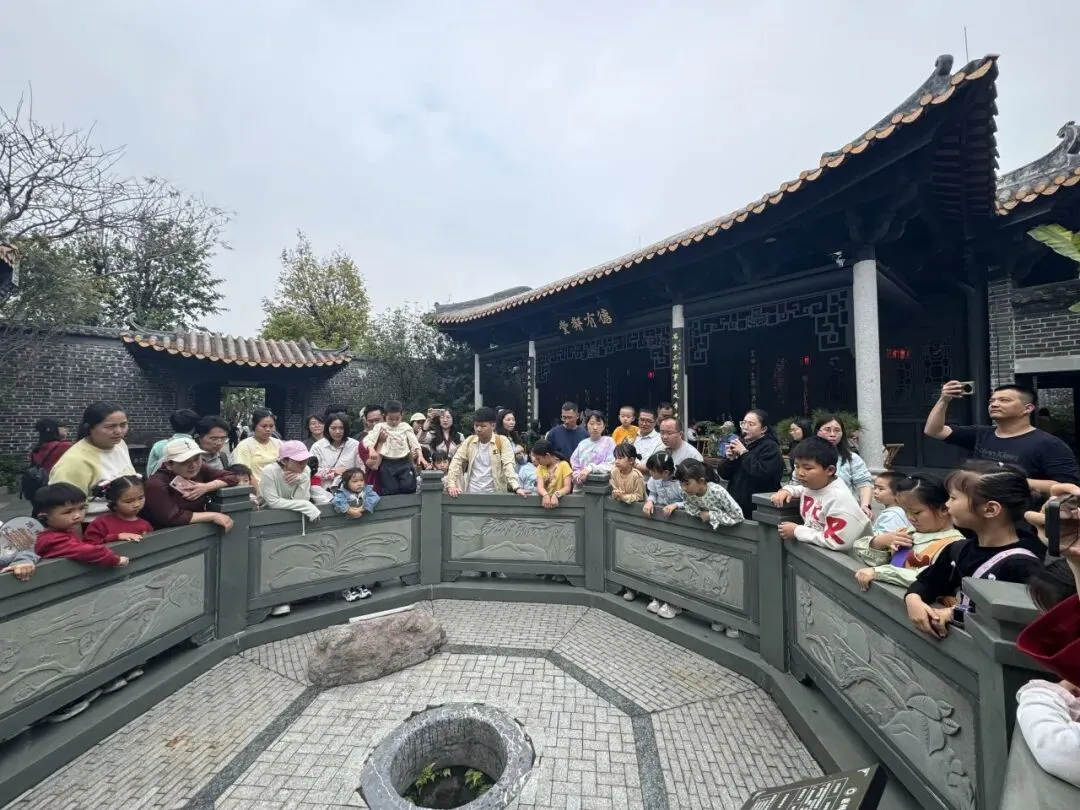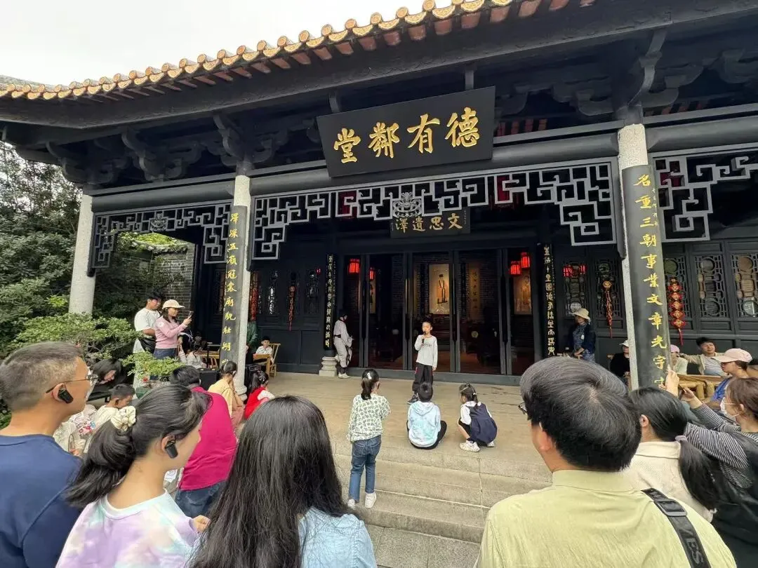 首先,在讲解员的带领下,校友家庭沿着宋代古道徐徐前行,依次探访林行婆卖酒处、翟夫子舍、德有邻堂、思无邪斋、迟苏阁等遗址。青砖黛瓦间,仿佛仍能听见千年前的市井喧阗;古井老树下,东坡先生“日啖荔枝三百颗,不辞长作岭南人”的旷达与深情,在讲解员娓娓道来的讲述中变得鲜活可感。孩子们踮脚张望,校友们凝神倾听,东坡寓惠两年零七个月的点点滴滴,悄然浸润着每个人的心田。