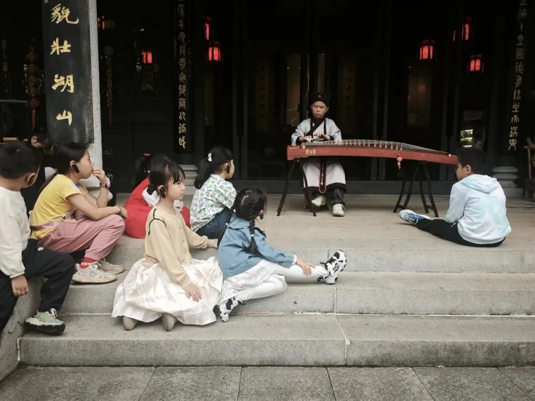 移步庭院,一场雅致的文化体验如约而至,古筝弦起,清音流淌。琴声未歇,稚嫩而清亮的童声随即响起,也有校友子女参与朗诵。声浪与琴韵交织,引得在场校友纷纷举起手机记录。有位校友感慨:“在东坡先生曾经生活过的地方朗诵他的诗词,这种感觉太珍贵了。”