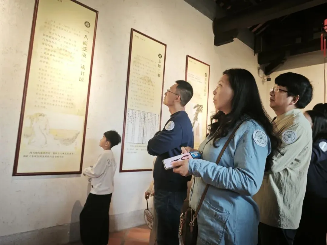 接着,大家移步东坡纪念馆。馆内丰富的文献史料、生活器物与多媒体展陈,全景式呈现了东坡先生在惠州的岁月。校友们与孩子一同沉浸其中,在历史的回响中触摸一位伟大灵魂的体温与光芒。