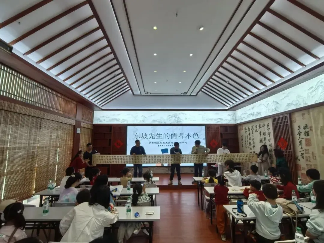 随后,唐老师以苏东坡的人生智慧为线索,引导孩子们主动思考诗文内涵。“对错无论,重要的是思考的过程。这是成长的开始。”他鼓励孩子们大胆表达见解。谈及东坡精神,唐老师语重心长:“人生不如意者十之八九,如意则有一二。我们把这一二发挥到极致,足以让生命发光。”最后,全体齐诵《论语·圣贤歌》为活动画上圆满句号。