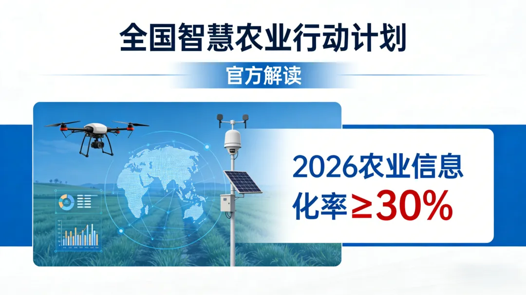 🌟 政策定调:2026年农业信息化率要达30%以上近日,《全国智慧农业行动计划》正式明确核心目标:到2026年,全国农业生产信息化率将提升至30%以上,推动数字技术与农业生产、经营、管理、服务深度融合,让“科技兴农”从口号落地为实际生产力。
