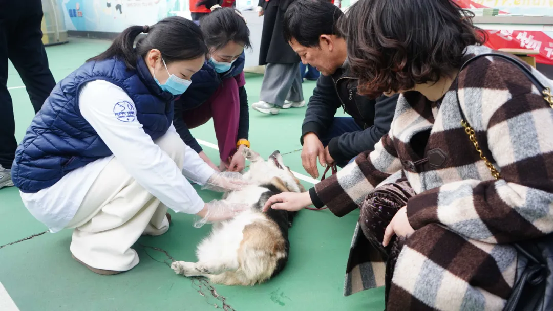活动还邀请了宠物医院,为居民们带来宠物义诊服务。不少居民牵着狗过来,宠物诊疗专家现场为狗体检并提供治疗建议。