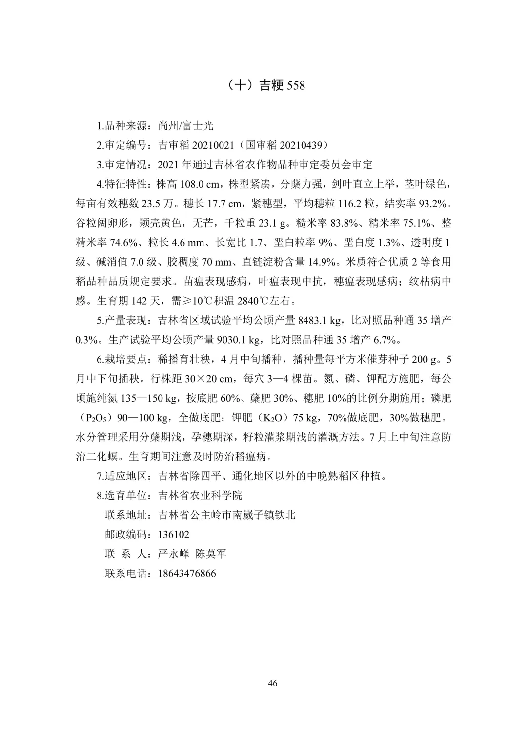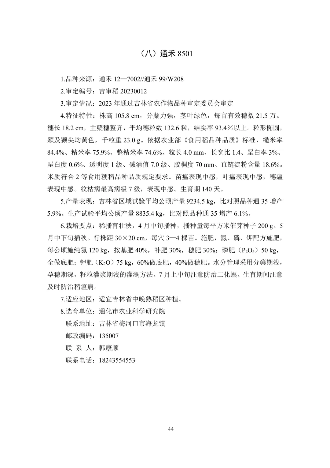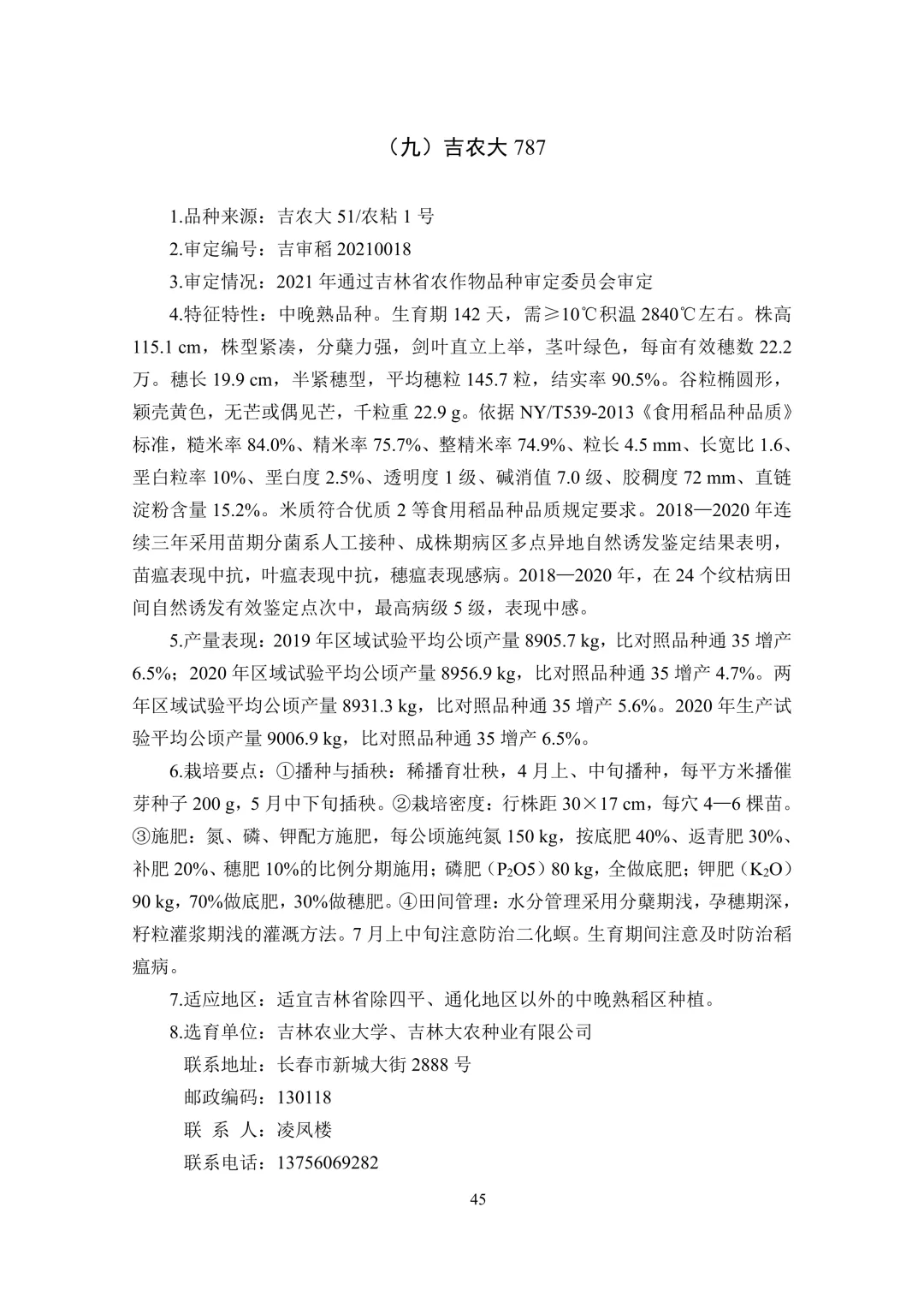 中晚熟区(6 个):通系 995、通禾 8501、吉农大 787、吉 粳 558、通育 271、九稻 87。
