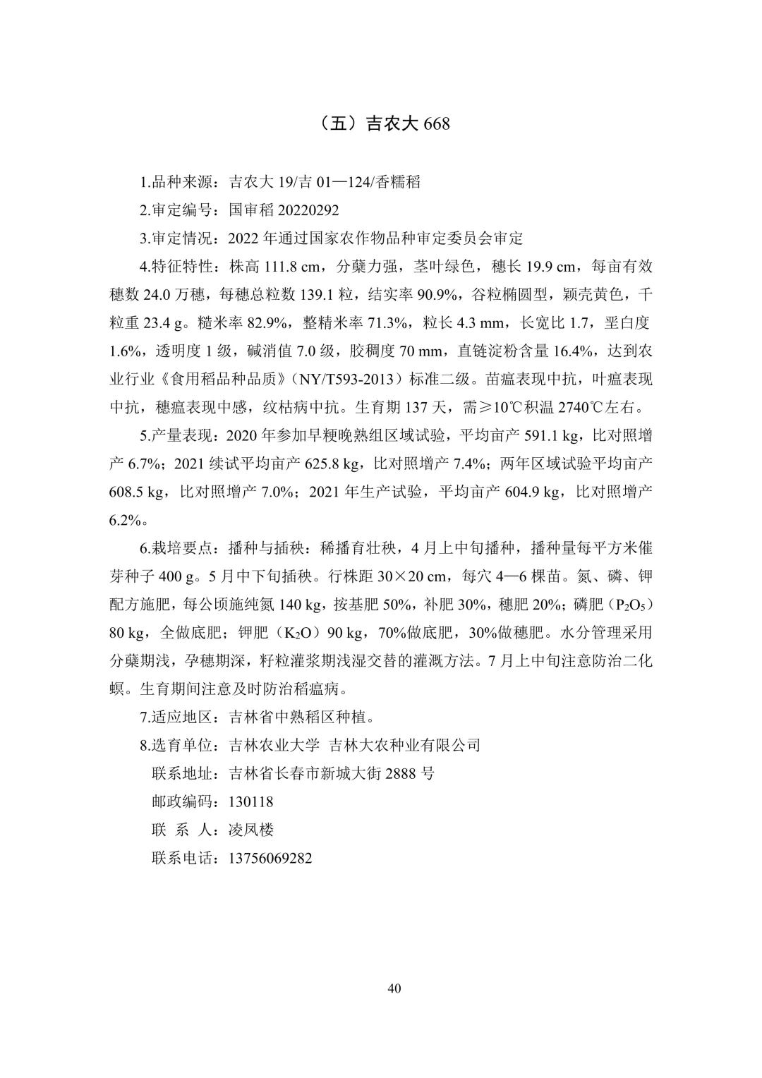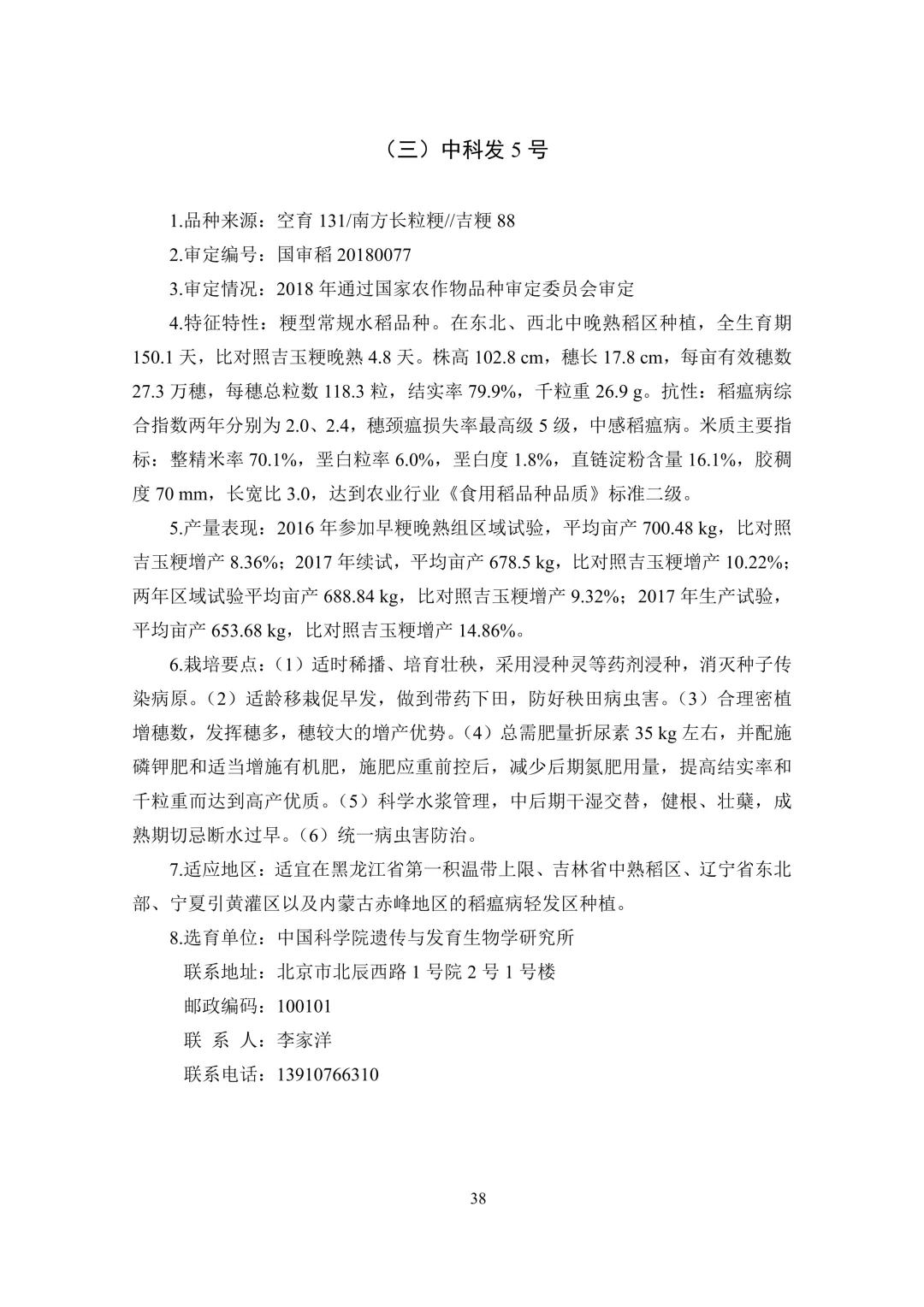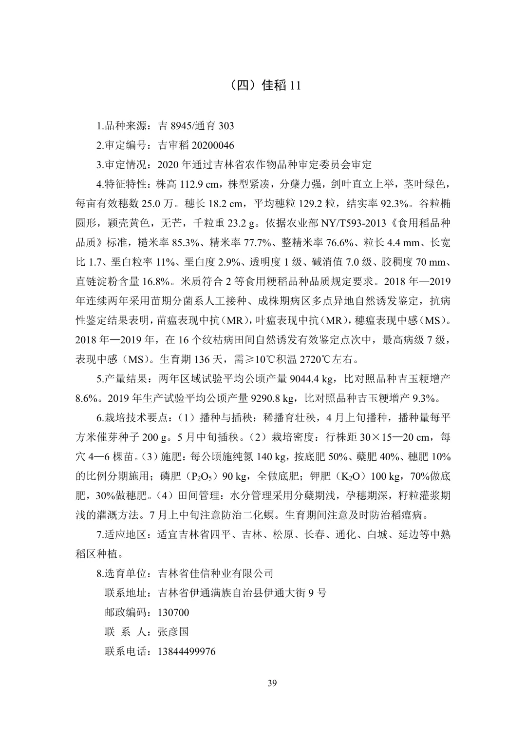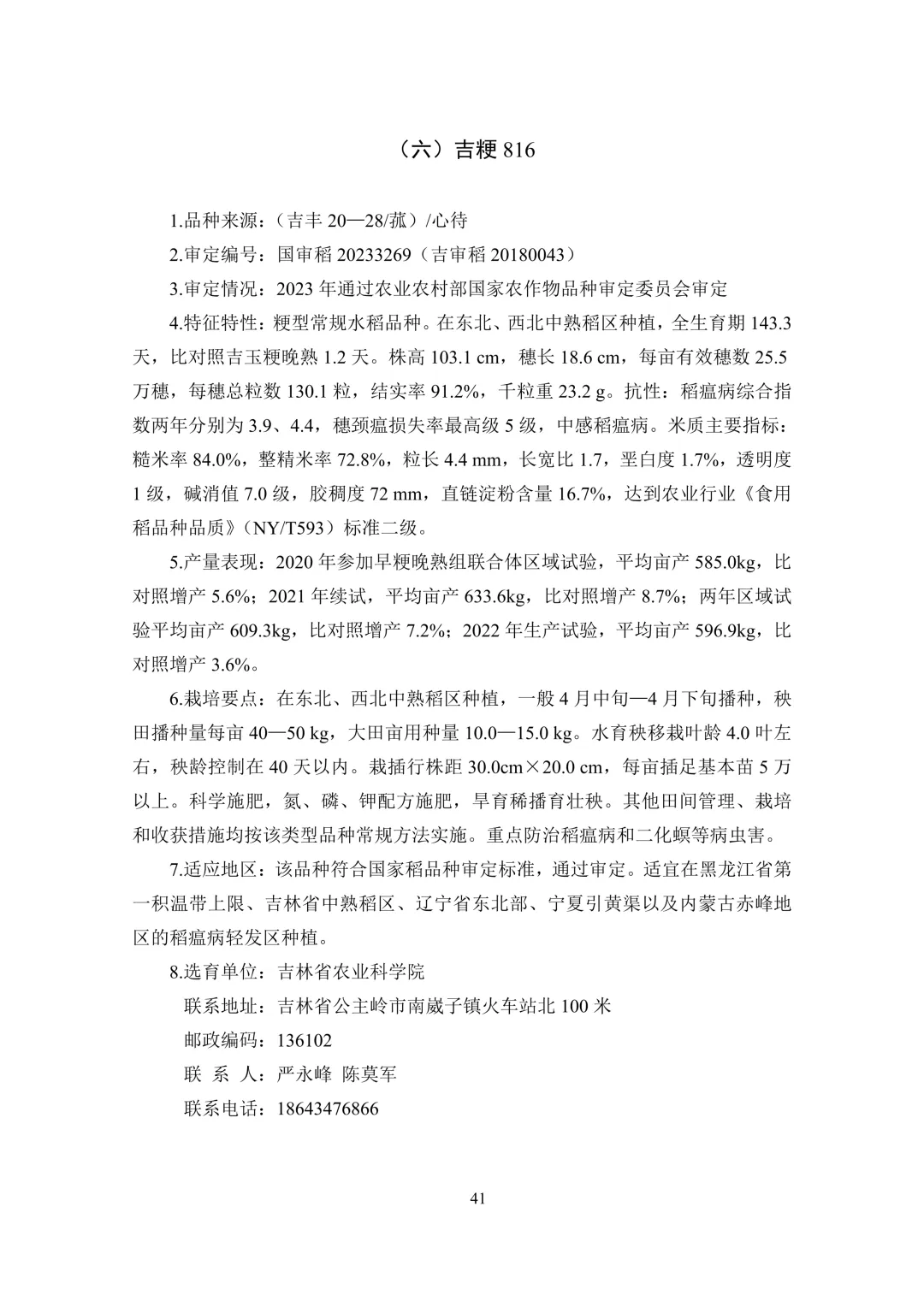 中熟区(4 个):中科发 5 号、佳稻 11、吉农大 668、吉 粳 816。