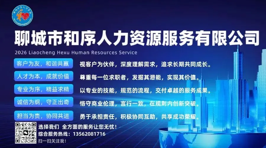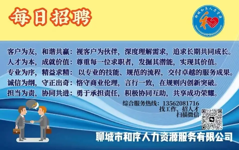 更多招聘信息:关注聊城和序人力资源求职平台