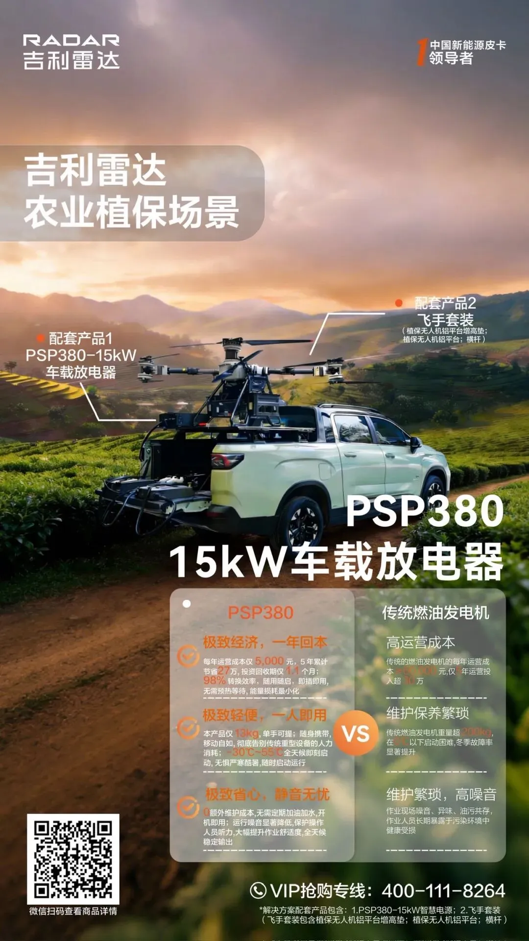 >吉利新能源皮卡丨农业植保飞手的新选择:高效充电,落地即起飞